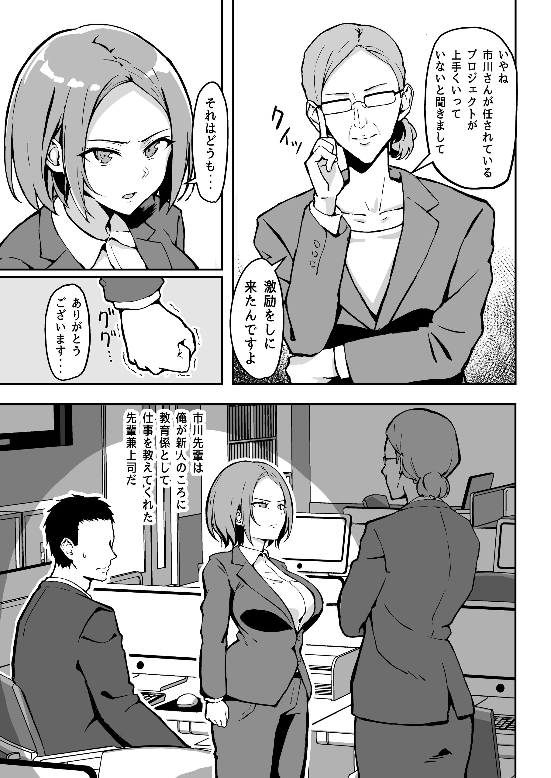 女上司の「市川」は任されたプロジェクトがうまくいっていないらしく、今日も何かと部下にあたり散らかす。普段は厳しいが後輩想いでもある良き女上司「市川」。後輩男性社員と残業しているといきなり倒れてしまう。そのまま市川を自宅に連れ帰って寝かせてあげることにしたのだが…。すると隣で寝ていたはずの女上司がいきなり赤ちゃんの如く泣き出したのだった…。
