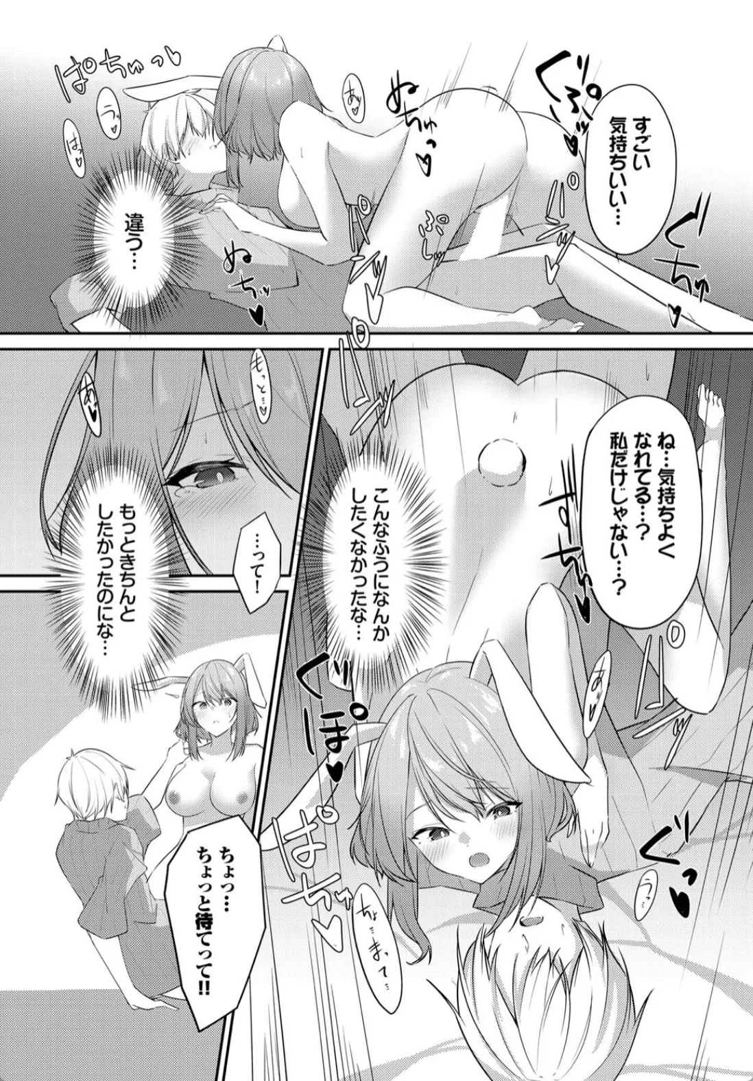 地下鉄構内怪異浸食地帯任務巡回討伐中―。うさ耳娘とペアで任務にあたる男。うさ耳娘は今発情期を迎えており、薬を飲むのを忘れて体が敏感になっていた。任務中にセックスがしたくてしたくてたまらない。「おっきくなってる…」相方の男のチンポを見てさらに欲情してしまったうさ耳娘はそれを舐めだす。フェラで口内射精させて騎乗位でチンポを入れ込むうさ耳娘。ここで男に告白されて両想いであることが発覚。今度からは薬を飲まずに男に処理をしてもらう魂胆らしい…。