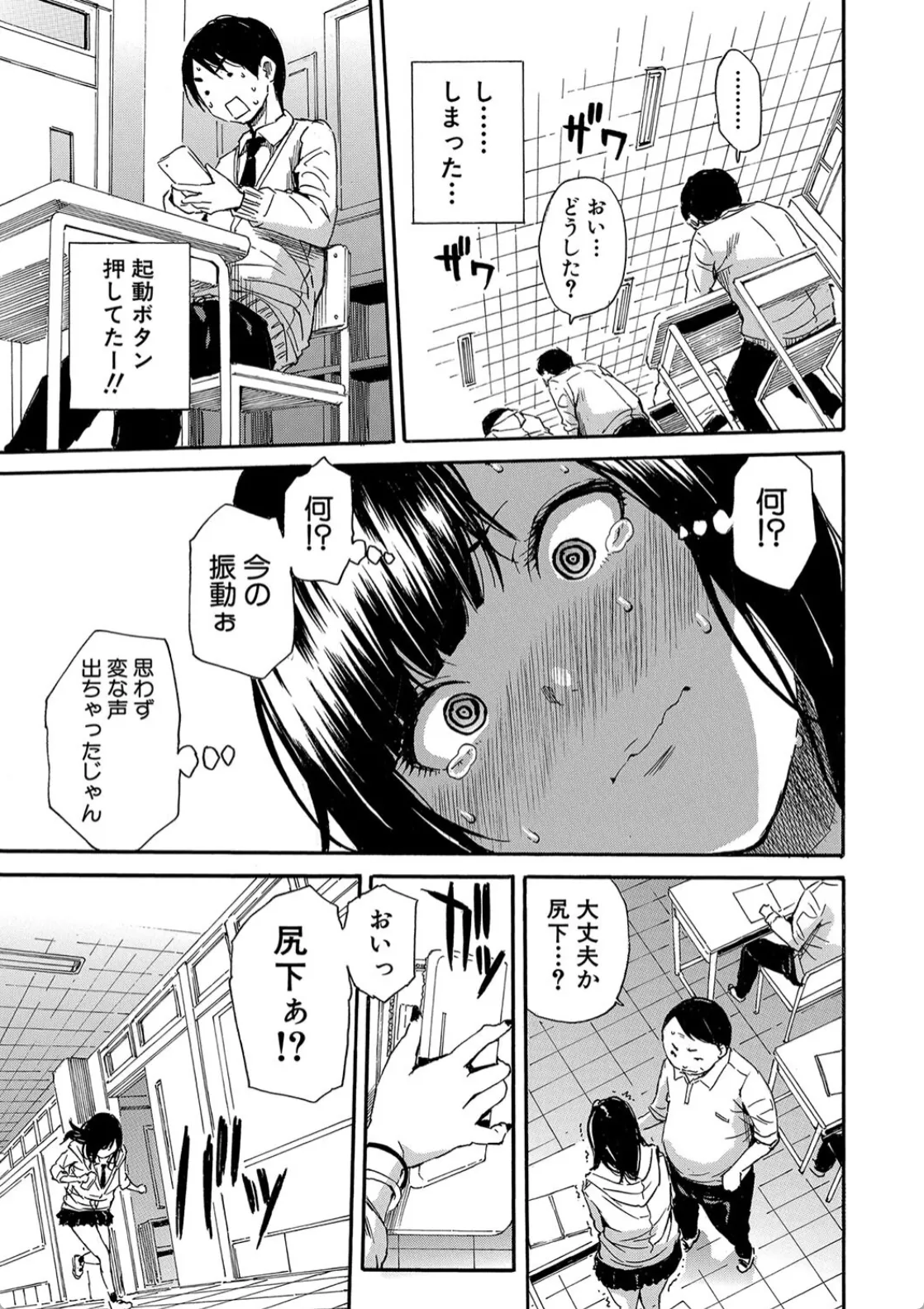「面屋」は親の会社がアダルトグッズを作っており、そのモニターを同じクラスの「尻下」に頼むことに。謝礼につられた尻下はアダルトグッズを受け取りそれを何故か教室で使ってしまう。振動音が少なくこれならバレないと思ったのだ。するとそこに先生がやって来て説教が始まる。尻下は玩具の快感に耐えられずトイレに逃げ込む。あとをつけてきた面屋は、欲情した尻下にチンポを咥えられて口内射精してしまう。尻下の欲求は衰えることを知らず、チンポを自分から入れて中出しフィニッシュ。「まだザーメン足りない!もっとチンポを味わいたいの!」