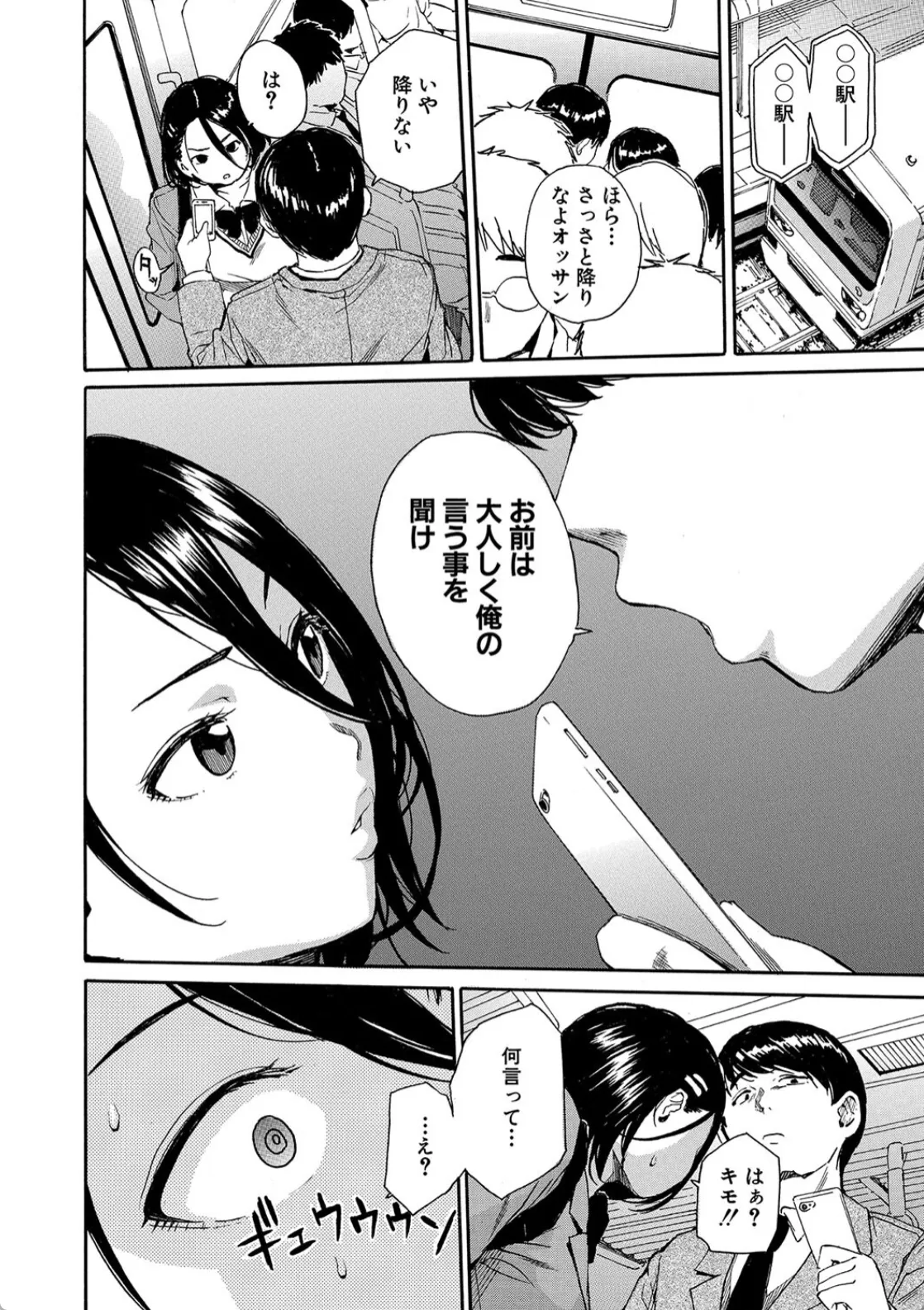 ボディコントロールアプリのモニターに選ばれたサラリーマンの「三下」。自分の声をアプリを通して特殊な音波に変換、それを相手に聞かせると体を操れるようになる。半信半疑だったが大家のおじさんに試してみたところ操ることに成功、疑念が確認にかわる。そして三下は電車内で出会った性格のきついJKに目をつける。「お前は大人しく俺の言うことを聞け。」するとJKの身体は途端に硬直する。三下は電車内でJKのパンツを脱がして立位で突きまくり中出しフィニッシュ。