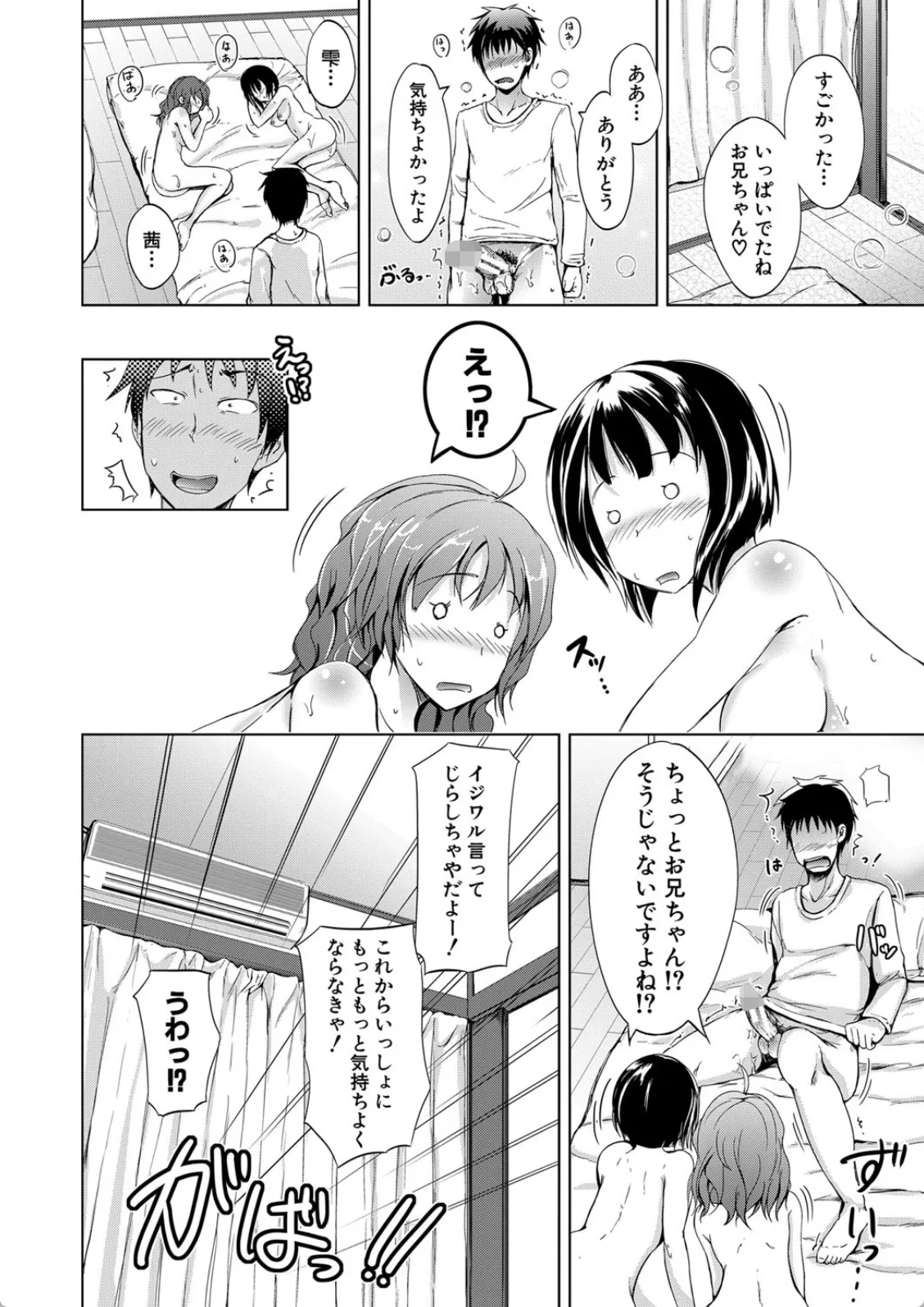 兄は両親からとんでもないことを告げられる。夜乃森家は代々つたわる淫魔の家系だったのだ。淫魔の家系は生理が来ると女は発情期になって精子を自然と欲してしまう。淫魔の血族以外の男とセックスしてしまうと精気を吸い取られて植物人間になったりと非常に危険なんだとか。そこで、兄は発情期を迎えた妹サキュバスたちの性欲処理を任せられることになった。朝っぱらから妹たちに5回も精子を搾り取られる兄。妹はそれだけでは足りずに学校でも兄を屋上に呼び出してチンポをねだる…。