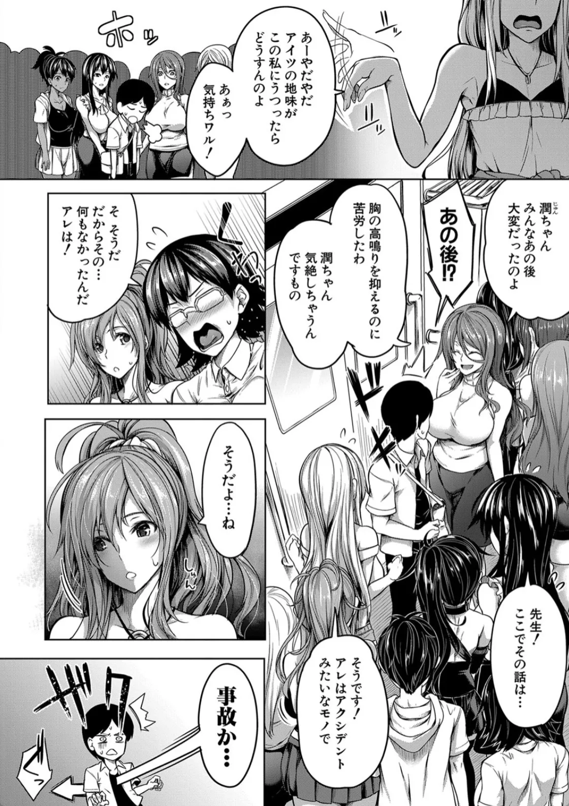 大学に行くために滑り込んでギリギリで車両に乗り込む美国。なんとか間に合ったとほっと一息かと思いきやそこは女性専用車両だった。電車は車両間の移動ができない特別車両。女性たちからの厳しい視線が向けられる中、おっぱいスイッチがオンに。すると車両にいた女性たちが突如発情し始める。これがおっぱいパラダイスというやつか。美国は車両内の女性たちに迫られて極上のハーレムセックスを味わうことになる。次の駅に着くまでの間、女性たちに何度も中出ししていく美国。ドアが閉まりますご注意ください。