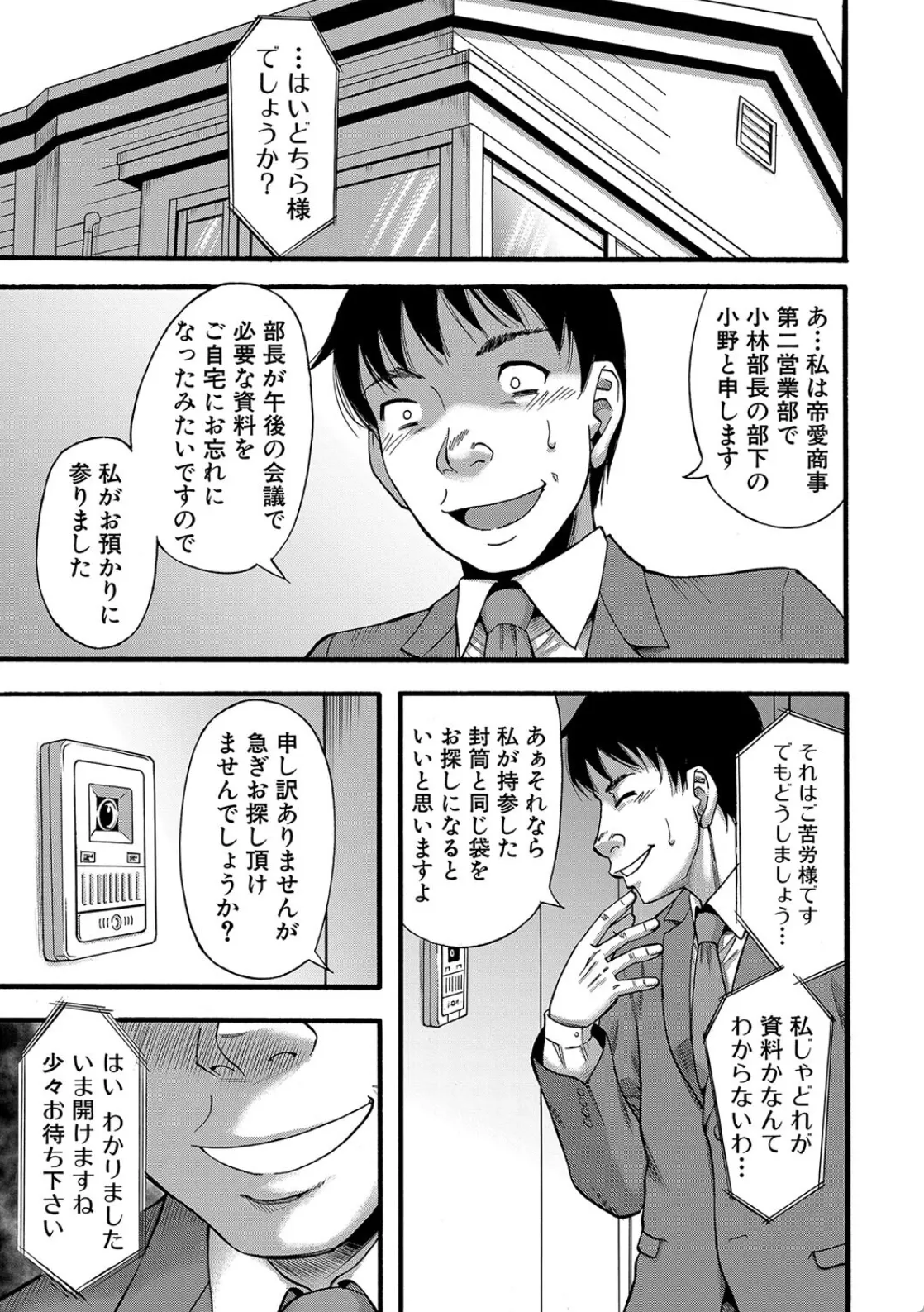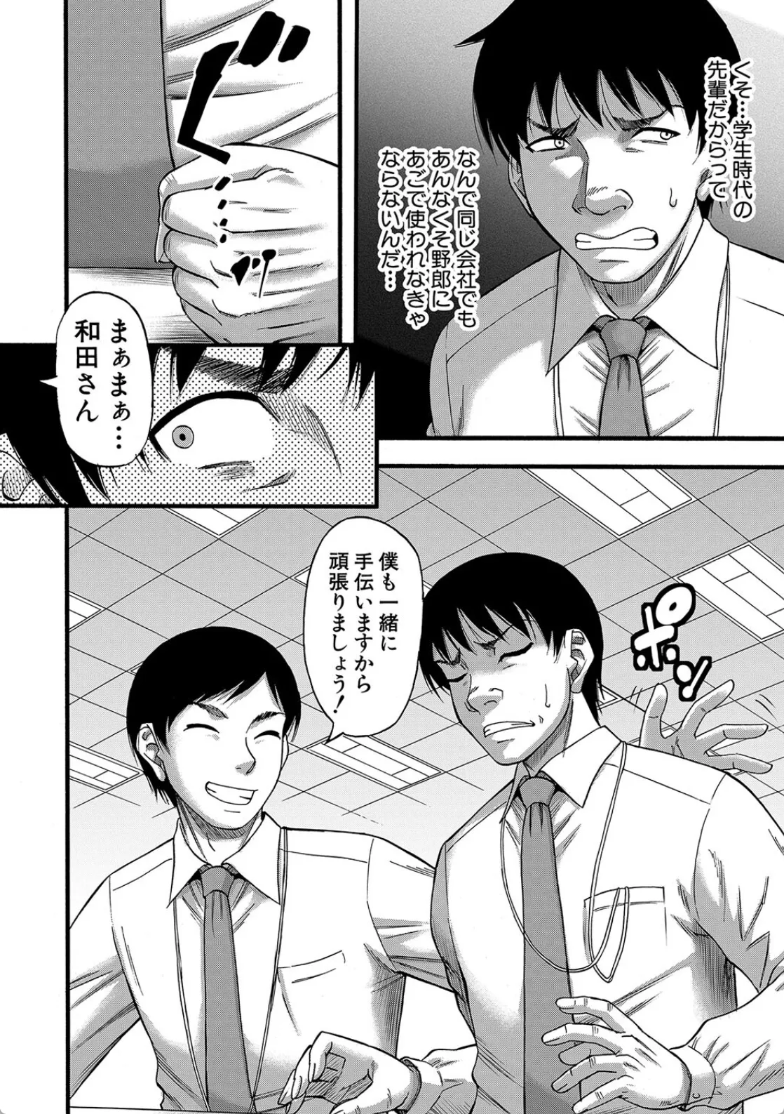いつも口うるさい上司。会社でよくいるパワハラ上司だ。自分のミスの尻拭いの案件を部下の哲也に押し付ける嫌なやつ。さらに先輩には残業ついでにと自分の仕事を押し付けられる。学生時代の先輩だからってなんでこんな目に合わないといけないのか。さらに横には偽善者ぶって悦に浸る同僚が。どいつもこいつもみんな嫌いだ―。哲也ここで復讐を誓う。ただ会社を辞めただけじゃつまらない。そうだこれは復讐だ。哲也は会社で嫌いな上司や先輩の女を犯すことを決意する。まずは上司の自宅に資料を届けると偽って訪問し…。