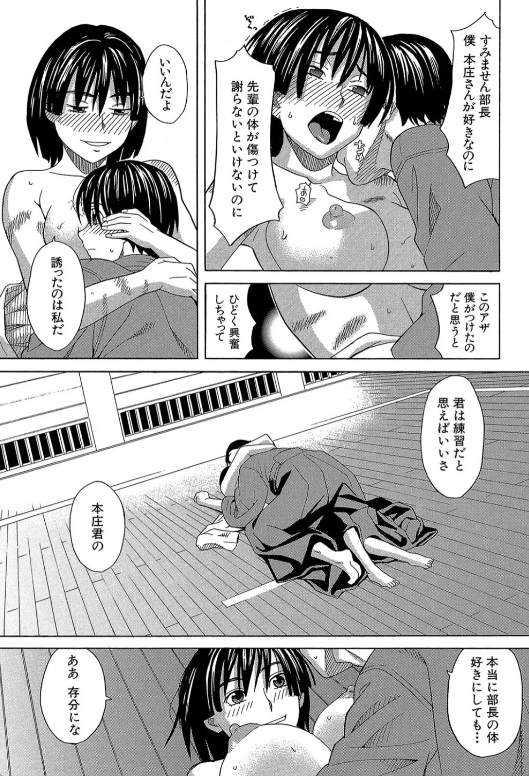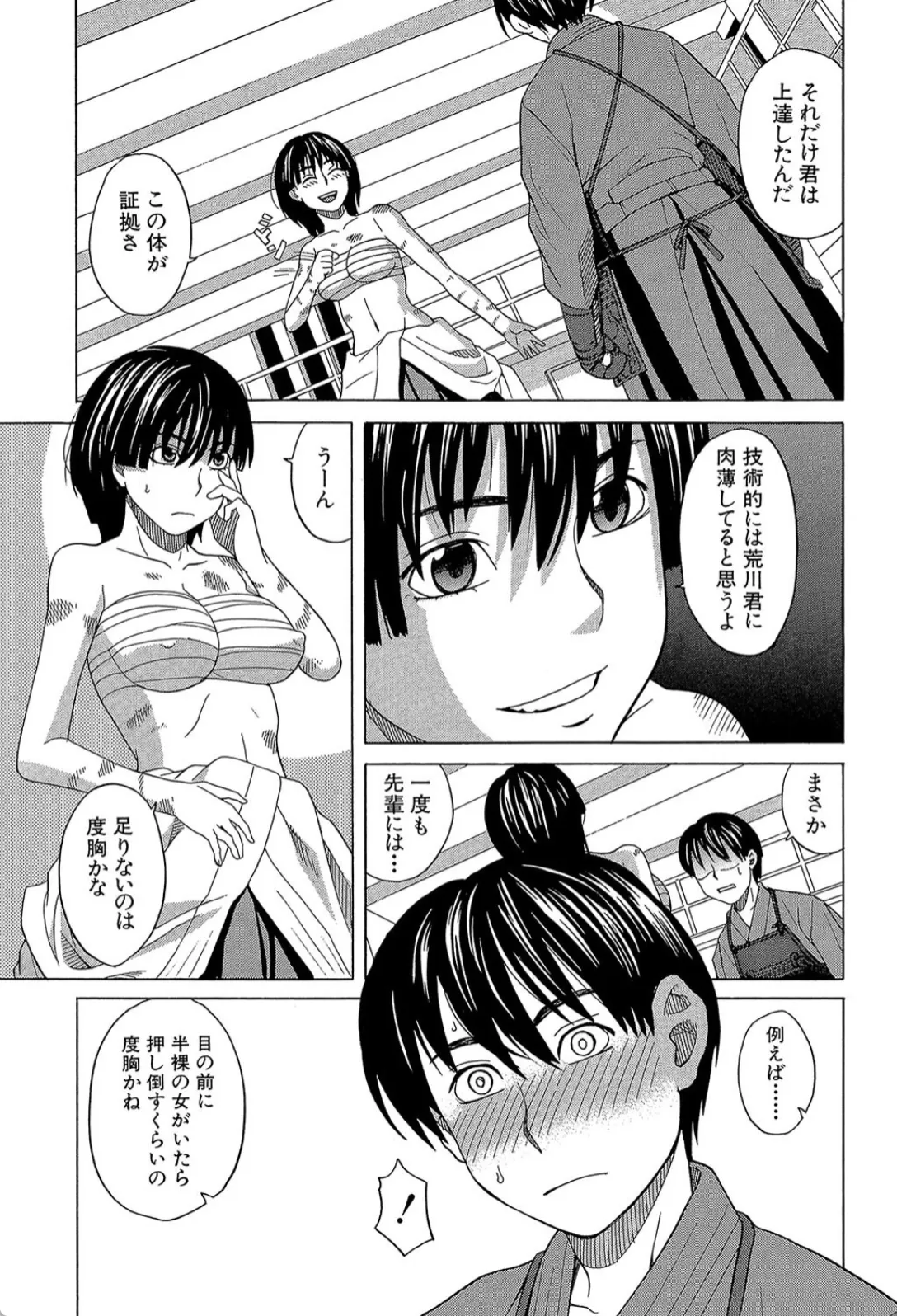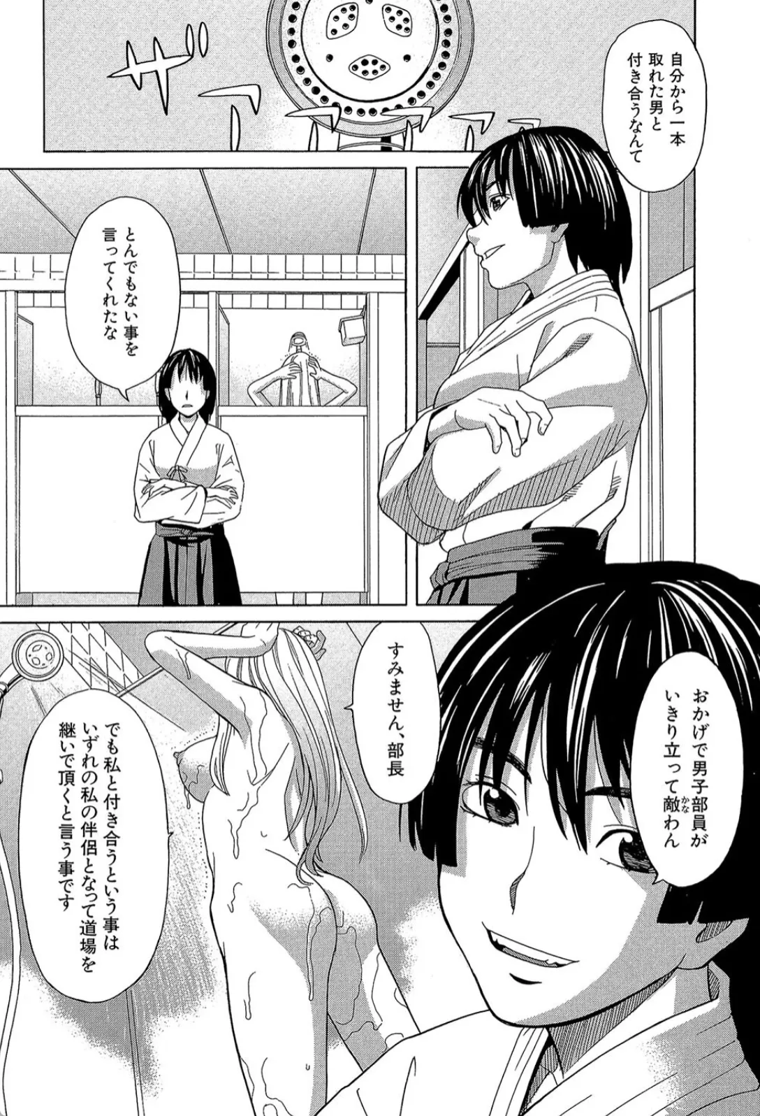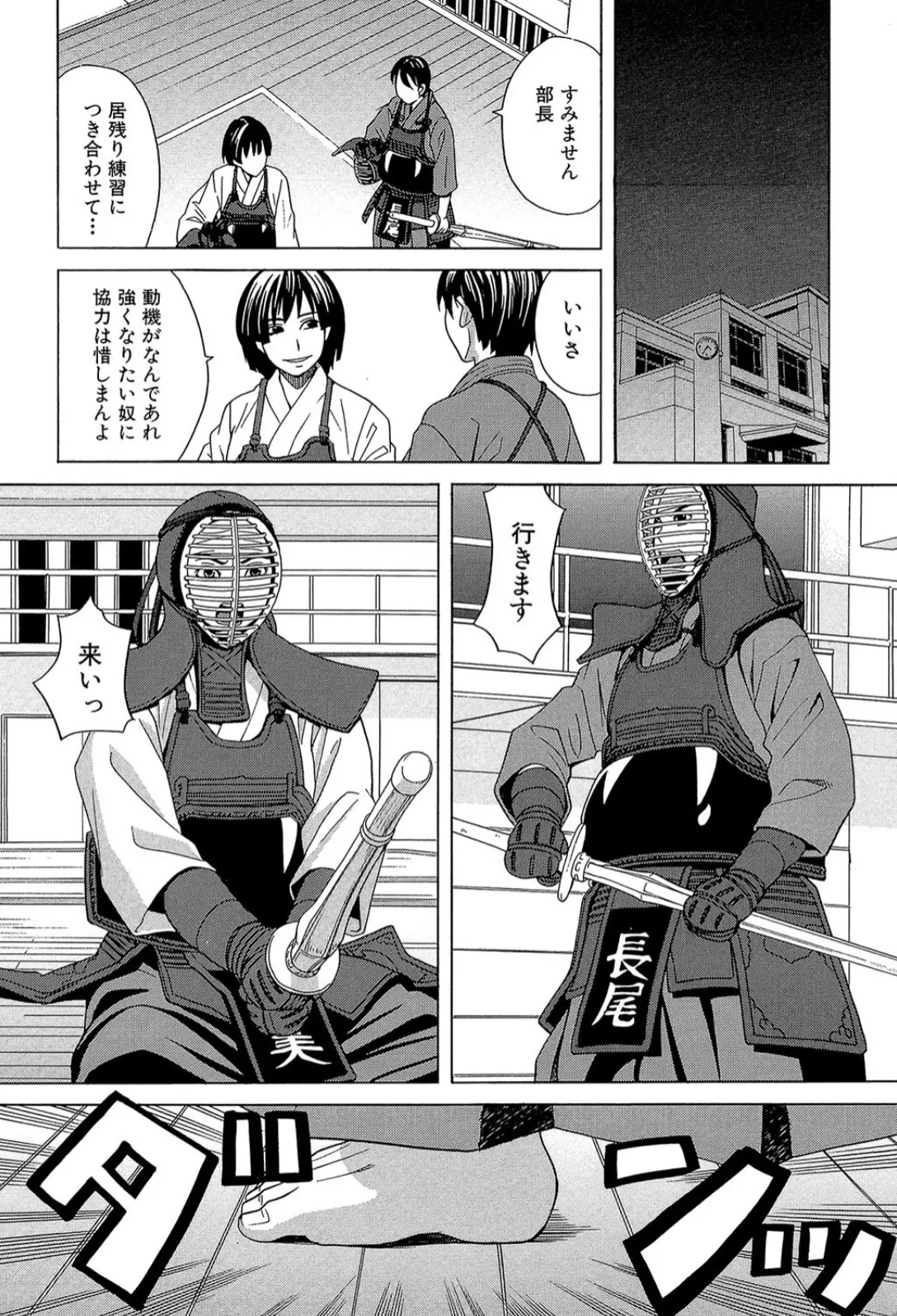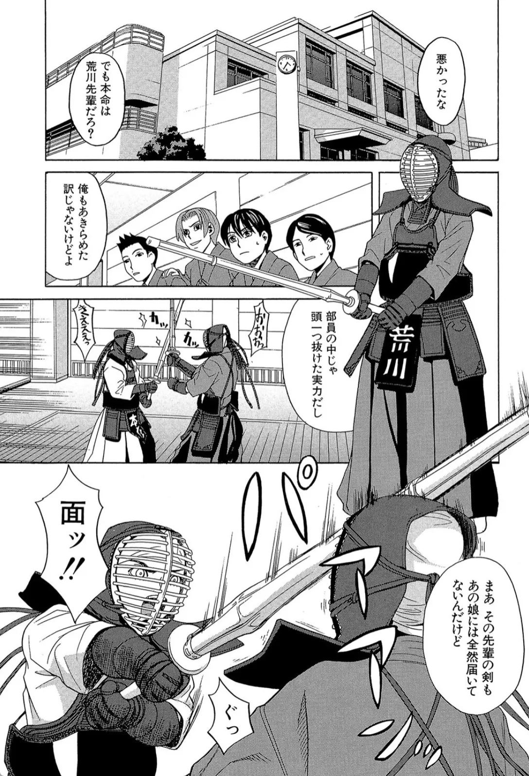 本庄道場の跡取りで剣道の天才娘「本庄美紀」。小6で父親を倒して以来、誰にも打ち込まれたことが無く未だに無配だ。そして、彼女は部員たちの実力を上げさせるためにもし一本打ち込めたら付き合ってあげるというとんでもない条件を出す。それを鵜吞みにした男子たちは日々練習に精を出す。長尾もそのうちの一人だ。長尾は美紀と付き合うために居残りで女部長と打ち込みの練習を始める。しかし、女部長にそそのかされて思わぬ方向へ…。思い切りが足りないと言われた長尾は女部長の誘いに乗って押し倒し、チンポをハメてしまい…。