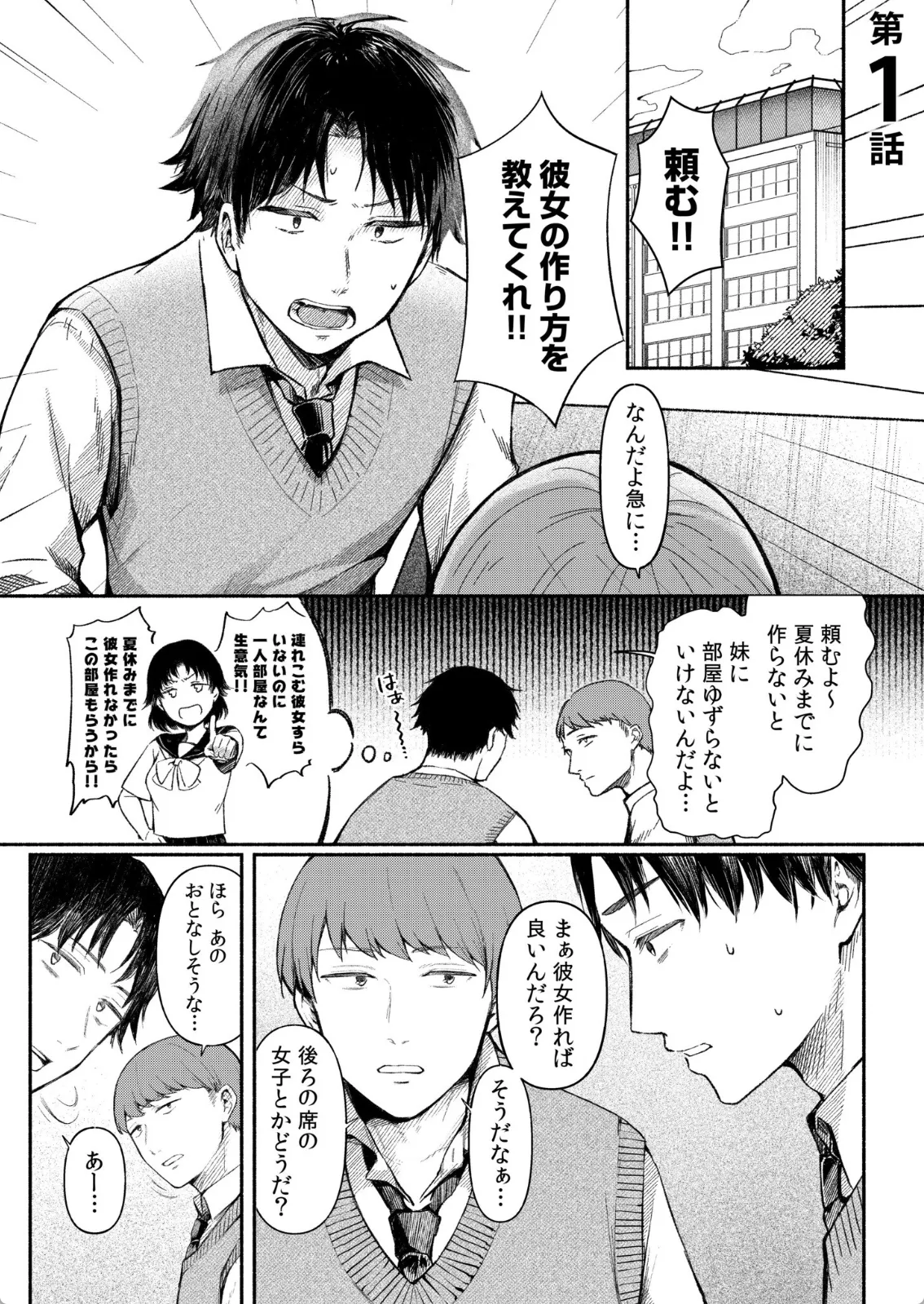 夏休みまでに彼女を作らないと妹に部屋をとられる奏太。友達に相談すると、後ろの席にいる井駒さんはどうかとすすめられ、話がこじれて放課後井駒と二人で話すことに…。「私の事好きって本当ですか?私でよければ…」と勝手に話が進んでしまう。そして、奏太に乗っかってチンポを擦りだす井駒。井駒は後ろでいつも一人で本を読んでいる地味系眼鏡っ娘だ。それがまさかこんなにエッチに積極的な娘だったとは。奏太はそのまま手コキで一発抜かれてしまう。「触っても良いよ?」奏太に乳首を舐めさせる井駒。井駒のパンツはぐっしょりと濡れていた。