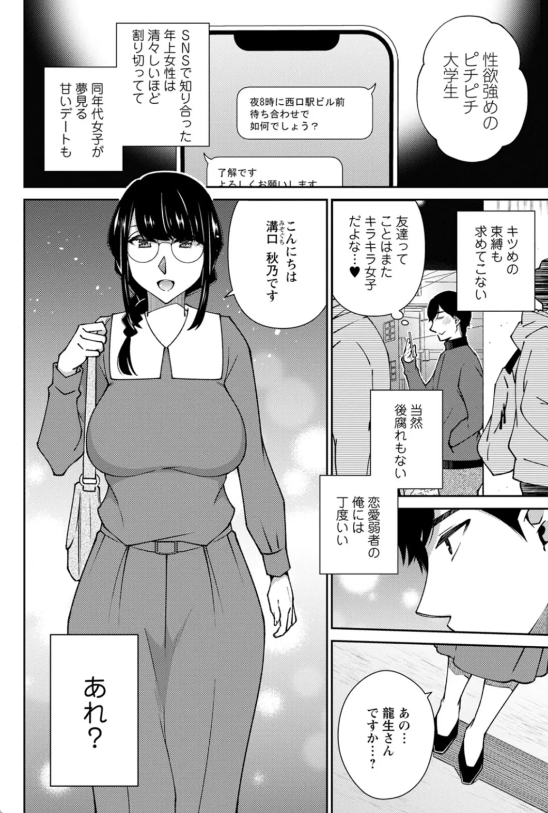 セフレに彼氏ができて関係は終わりかと思ったら次の子を紹介してくれるという。龍生が初めて秋乃と対面したのは数日前。とりあえずご飯に行く二人。龍生は秋乃の地味な見た目から無理かもと決めつけてテキトーな嘘を言ってその日は帰ろうとする。しかし秋乃はそんな嘘を見抜いていた。「見た目だけで判断するのはもったいないと思いますよ?」その流れでホテルに行って実際にヤってみると彼女のテクは想像以上。寸止めフェラから騎乗位で腰振り。寸止め足コキからまた中出しと龍生は秋乃のエロテクに完全に落とされて…。