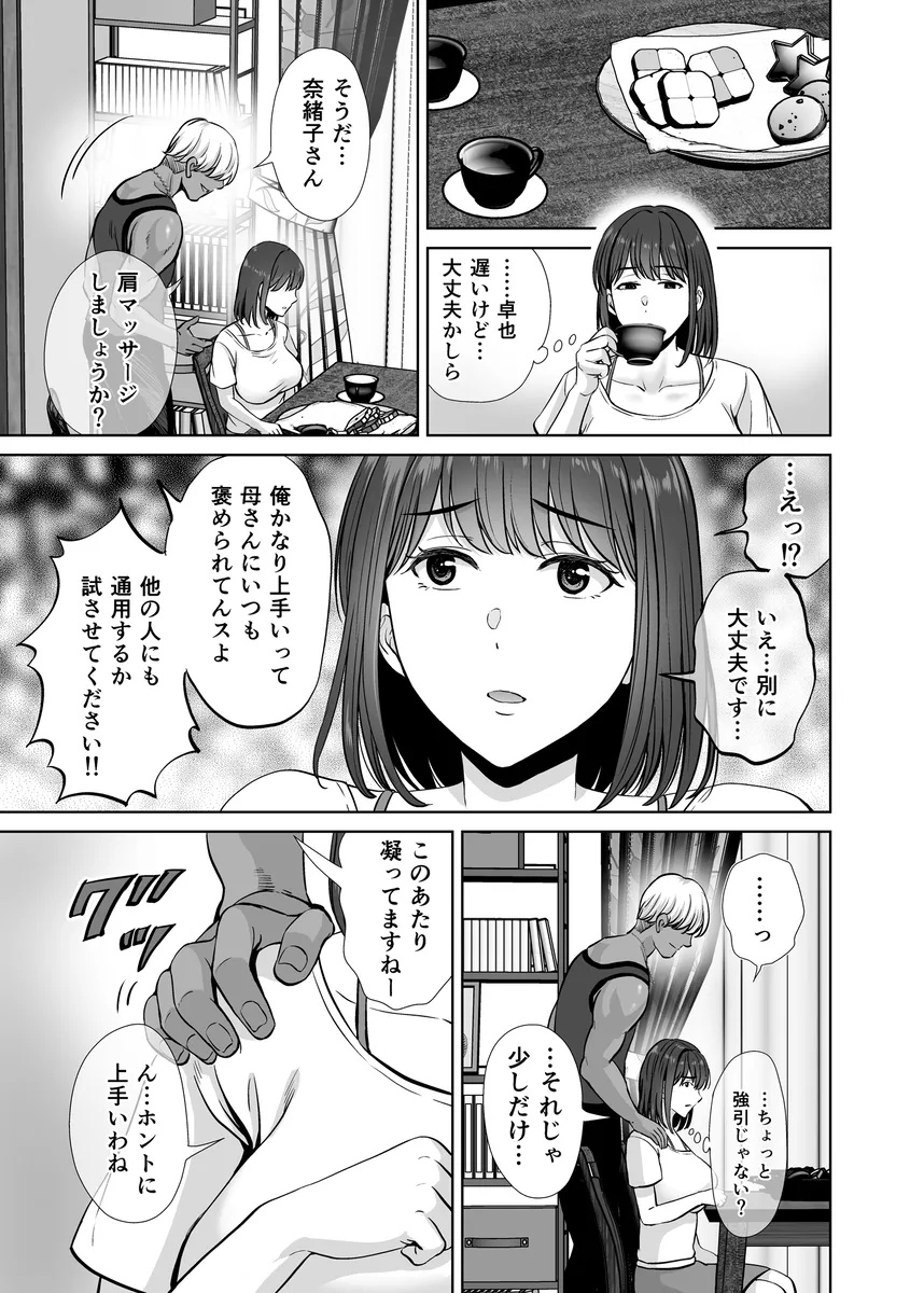 卓也は将斗の母親「由香利」のおっぱいを揉んだ経験が忘れられずにいた。あの豊満なおっぱいをもう一度揉みたい…。卓也は大学生になって将斗と再会する。将斗はすっかりチャラ男になっていた。二人は居酒屋での帰り道に卓也の母親の「奈緒子」と遭遇。せっかくだからと、久しぶりの再会を機に将斗の家にあがらせてもらうことに。そして、将斗は母親スワッピングをしようと卓也に提案する。卓也もこれに賛同。酔ったふりをした卓也はトイレで由香利と一対一に。「あの時の続き今からしよっか?」由香利はあの日卓也とした約束をちゃんと覚えていたのだ。