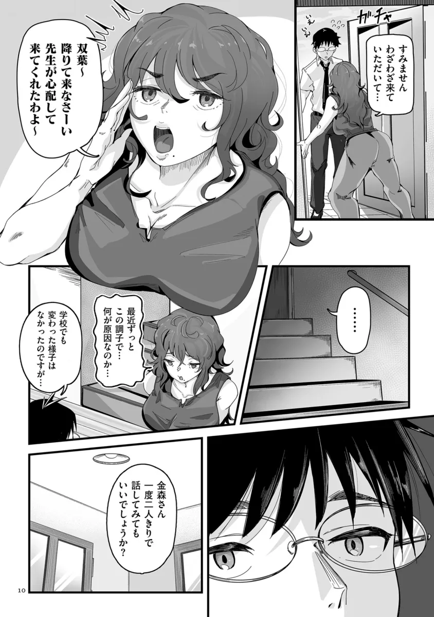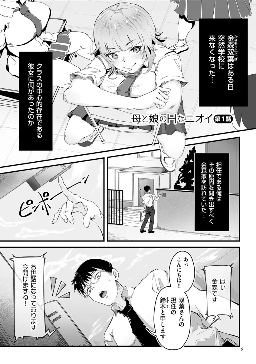 教師と生徒、教師と生徒の母親、絶対にあってはならないという関係だとわかっている。しかし、二人の美女から言い寄られて断れる男がどれほどいるだろうか。教師の鈴木は突然不登校になった双葉の家を訪ねていた。出迎えてくれたのは双葉の母親。母親が呼んでも双葉は二階の自室に篭ったまま。鈴木は、双葉の部屋に入るとツンとした刺激臭を感じる。双葉の不登校の原因がこれだった。体臭を気にして学校に来れないのだ。双葉は腋毛の生えた腋を鈴木に嗅がせる。鈴木は、その匂いでチンポが勃起。チンポが勃起していることがバレてしまった鈴木はそのまま双葉にチンポをしゃぶられ…。
