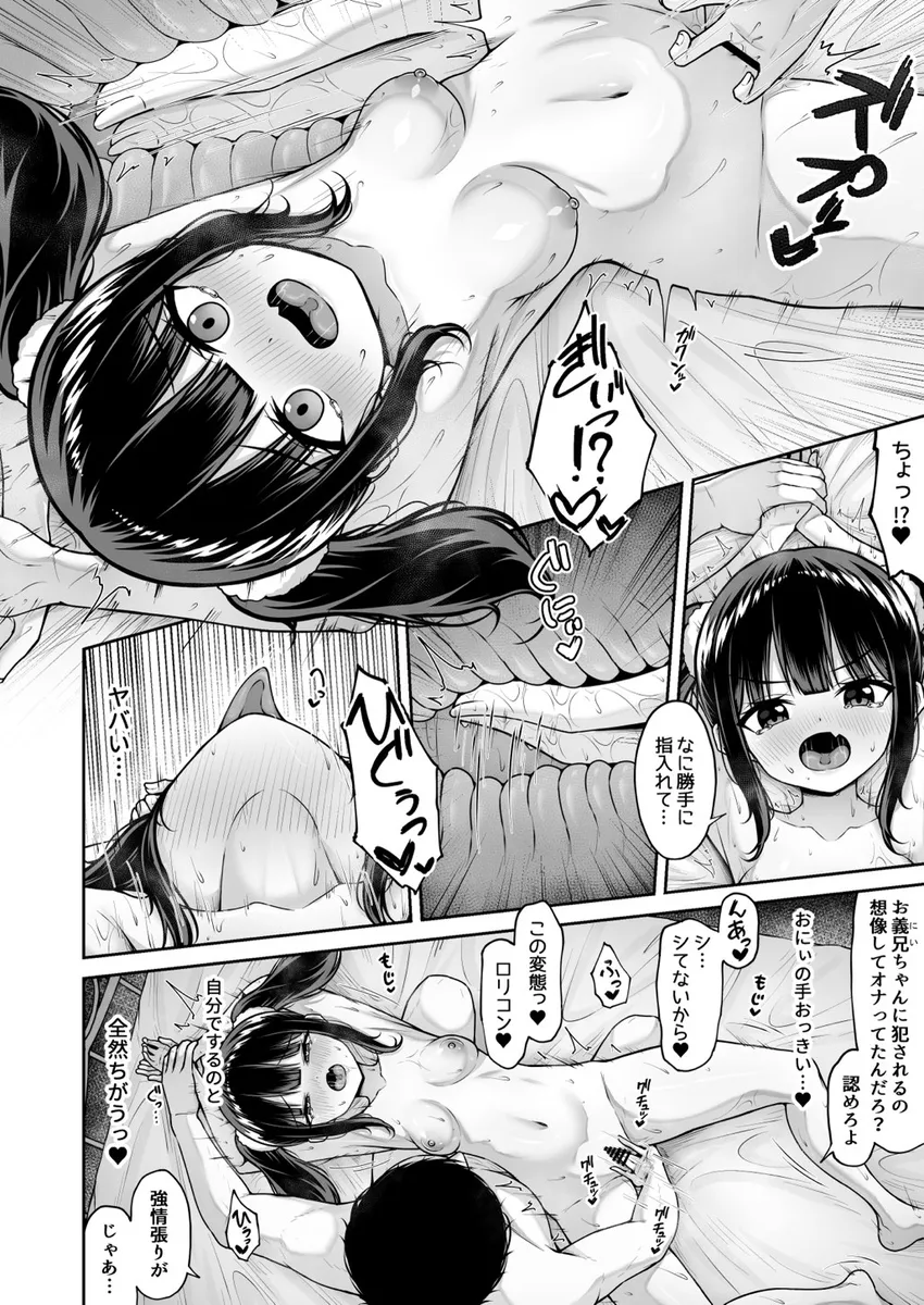 風呂から上がった兄は自分の衣服がないことに気付く。義妹の仕業だ。義妹のまゆはお兄ちゃんの服は臭いし汚いから捨てたとのこと。まゆは生意気で常に兄の事を馬鹿にしている。兄は、ついにチンポを使ってわからせを遂行することを決意。その夜、まゆの部屋に侵入した兄はそこで思いもよらぬ光景を目にする。まゆが兄の使用済みパンツの匂いを嗅ぎながらオナニーをしていたのだ。まゆは普段は兄の事を馬鹿にしているが、本当は兄の事が好きだったらしい。兄はそんな妹の両手首をつかんで手マンでマンコを刺激。さらにデカチンポを容赦なくアナルにぶち込んで…。