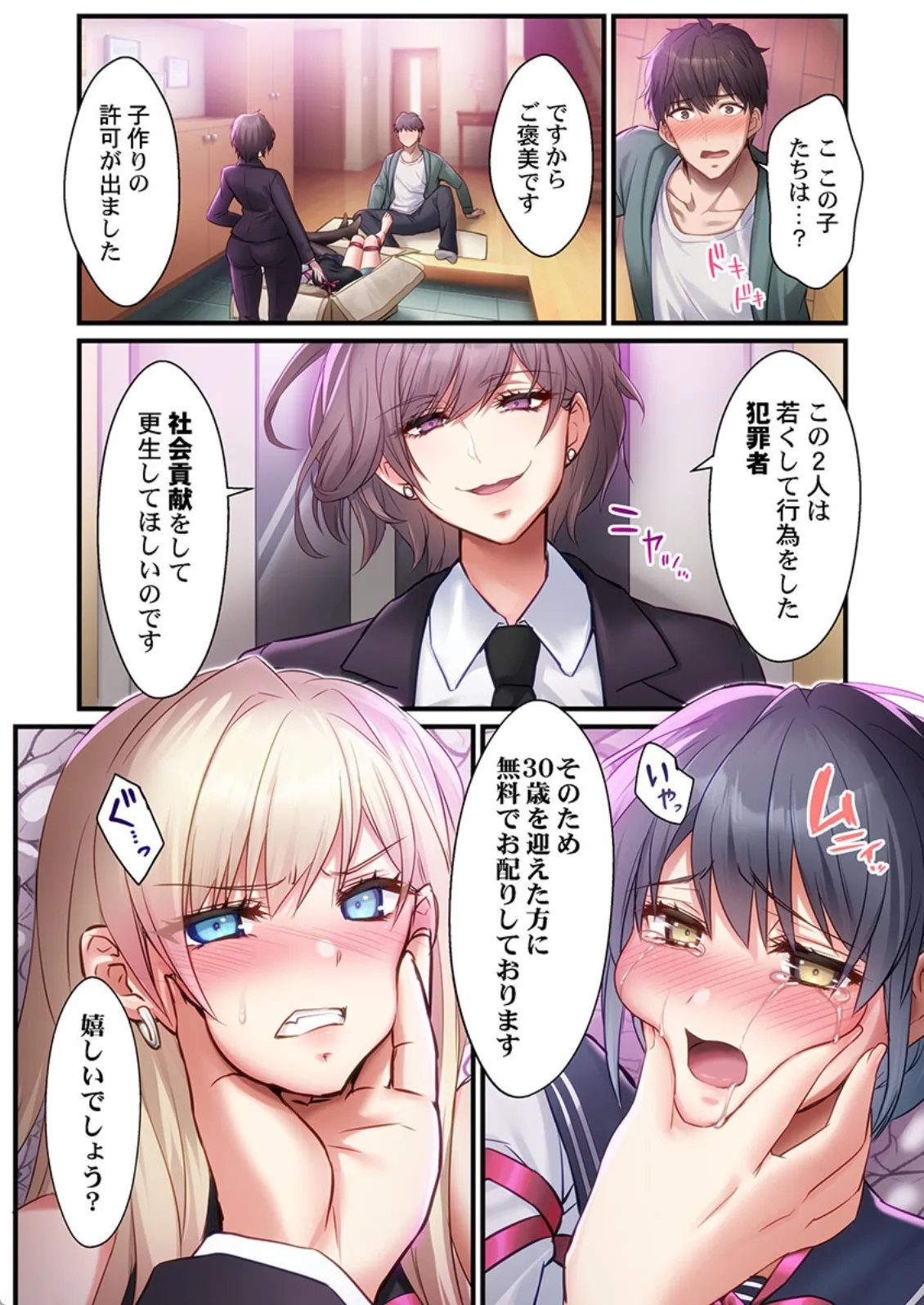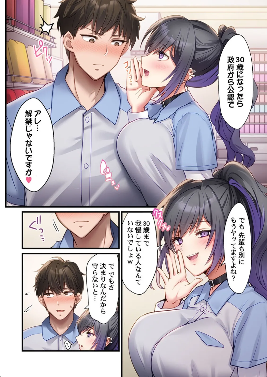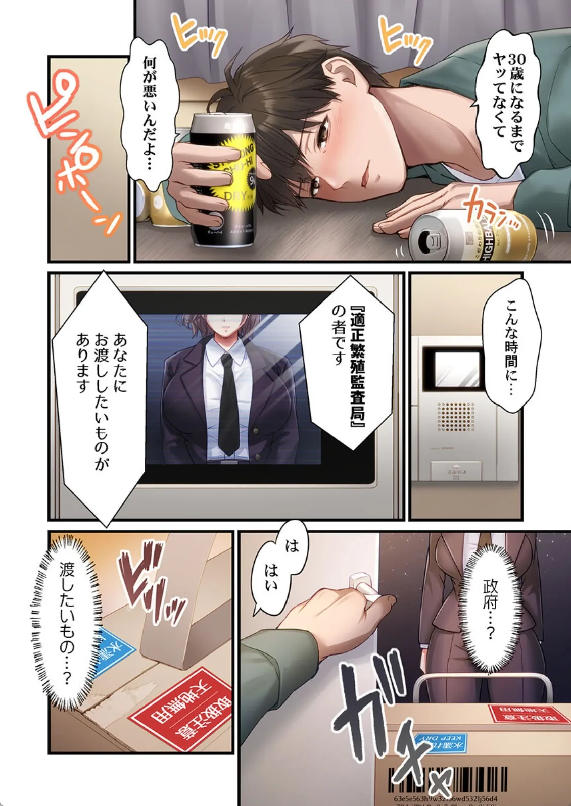 人口が増え過ぎた現代。政府は食糧危機を懸念し30歳まで性行為を禁止。性行為は政府が指定した相手のみとしかできない。コンビニバイトの直樹は今日で30歳になる。30歳までセックスができなかったわけじゃない、しなかったんだと苦しい言い訳をする童貞の直樹の元に政府の役人から荷物が届けられる。その段ボールには二人の女性が入っていた。その二人の女性は若くしてセックスをしてしまった犯罪者。政府は30歳まで禁欲に成功した男性に無料で種付けができる女性を配っているのだそうだ。直樹は今まで溜まっていた性欲を生マンコにぶつけ、ザーメンを膣内にコキ捨てる。
