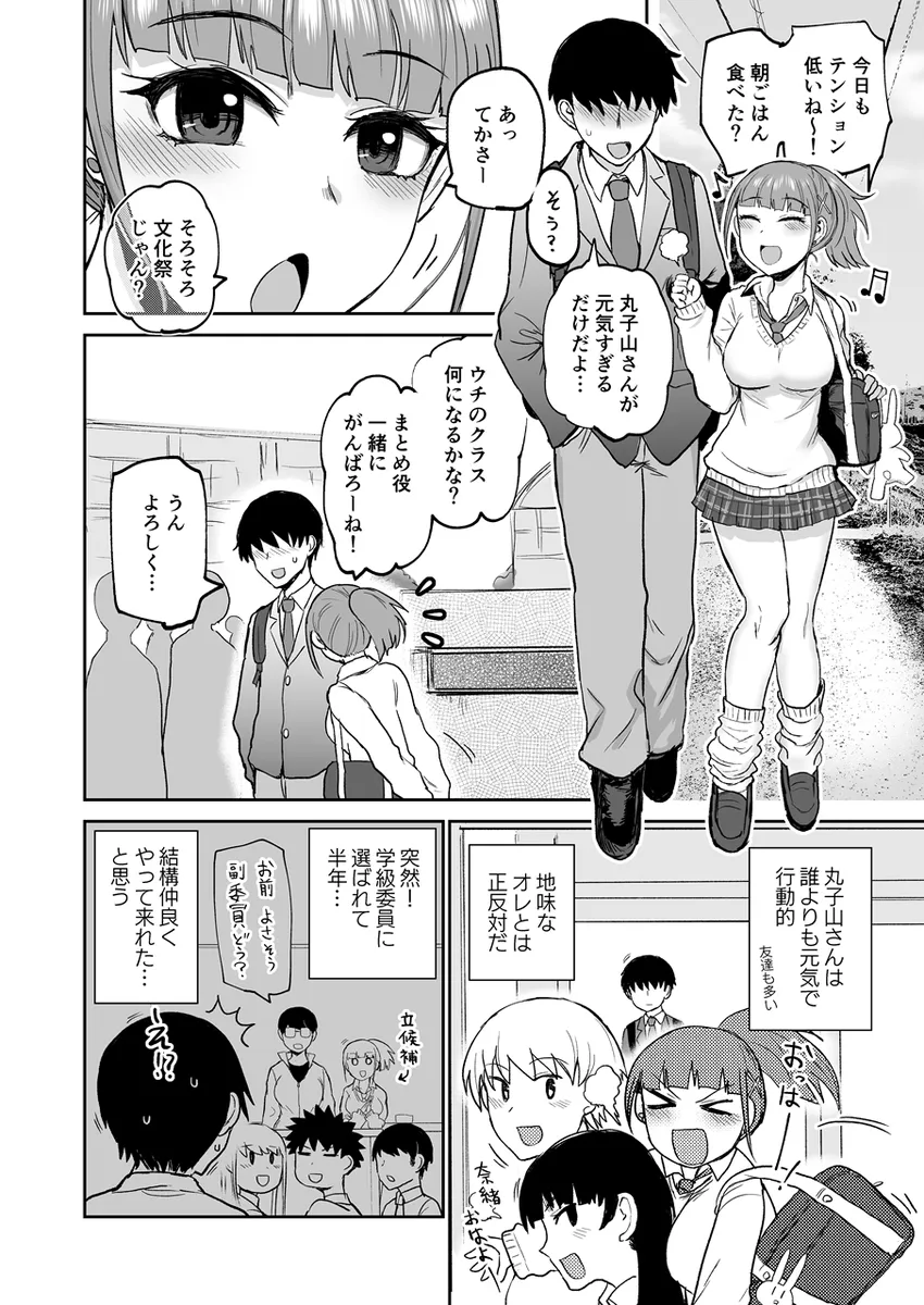 明るくて活発なJK丸子山さん。丸子山さんは朝からテンションが高い。陰キャで地味は俺とは正反対の存在だ。学級委員決めで副委員長にさせられてしまったため、委員長の丸子山さんと何かと接する機会も多くなった。女子に頼られるのがうれしくて俺なりに頑張ってきた。なんだかんだで結構うまくやってこれたと思う。しかし、困ったことに丸子山さんはボディタッチが多く、距離が近い。男子との距離感というものを理解していないのだろうか。そんなこんなで半年が過ぎたころ、俺は気が付いたら丸子山さんのことが好きなってしまっていた。