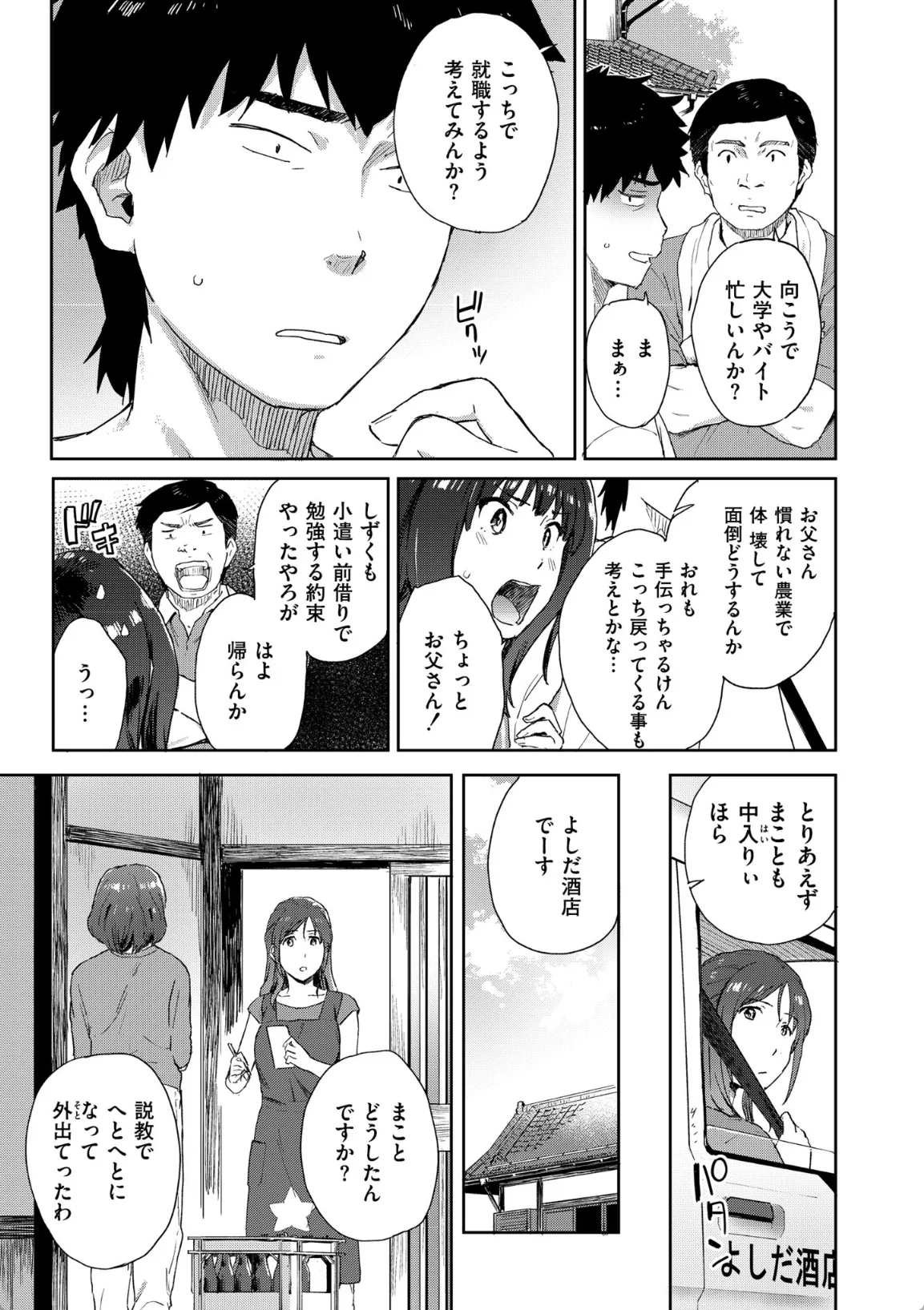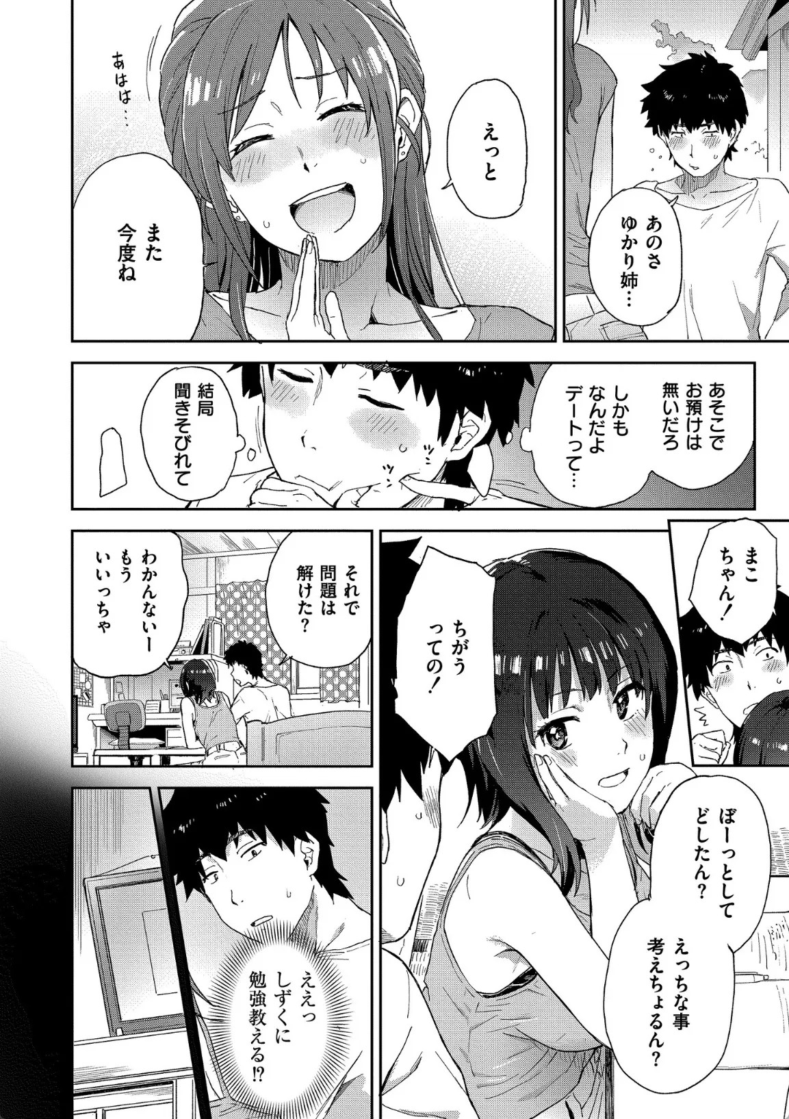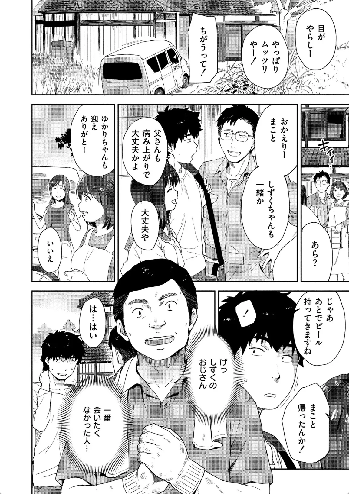 まことは久しぶりに田舎に帰省する。嫌な気持ちにさせる地元の空気。出迎えてくれたのはゆかり姉としずくだ。田舎の空気に馴染めずどこか遠くの大学に行きたいと必死で勉強していたころが懐かしい。ここにいると何かに縛られているようで息苦しい。そういうまことにゆかりは「じゃあ憂さ晴らしにエッチでもする?いいよ?昔みたいにまたしても」とエッチに誘う。まことが大学に行く前、二人は体の関係を持っていた。裏の納屋に移動してゆかりにチンポをしゃぶられるまこと。立ちバックで挿入しようとした瞬間、ゆかりを呼ぶ声が聞こえて…。