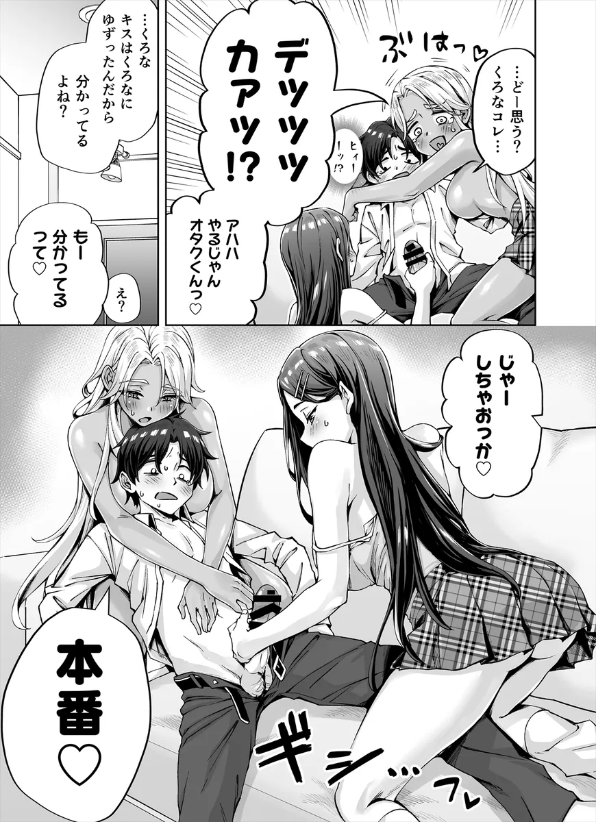 友達だと思っていたのに、それは俺だけだったらしい。俺は今、猫耳ギャル二人に搾り取られる生活を送っています。どうしてこんなことになったのかというと、遡ること少し前。クラスでカーストトップのギャルJK、くろなとしろなに話しかけられたところから始まった。彼女たちは所謂絶滅危惧種だ。「あ、ゲームやってる!今度家遊びに行っていい?」となぜか一緒に家でゲームをすることに。そして、夢のようなひと時を過ごしたあと、二人は何故か服を脱ぎ始める。まさかオタク陰キャの俺がこんな形で童貞を卒業することになろうとは…。