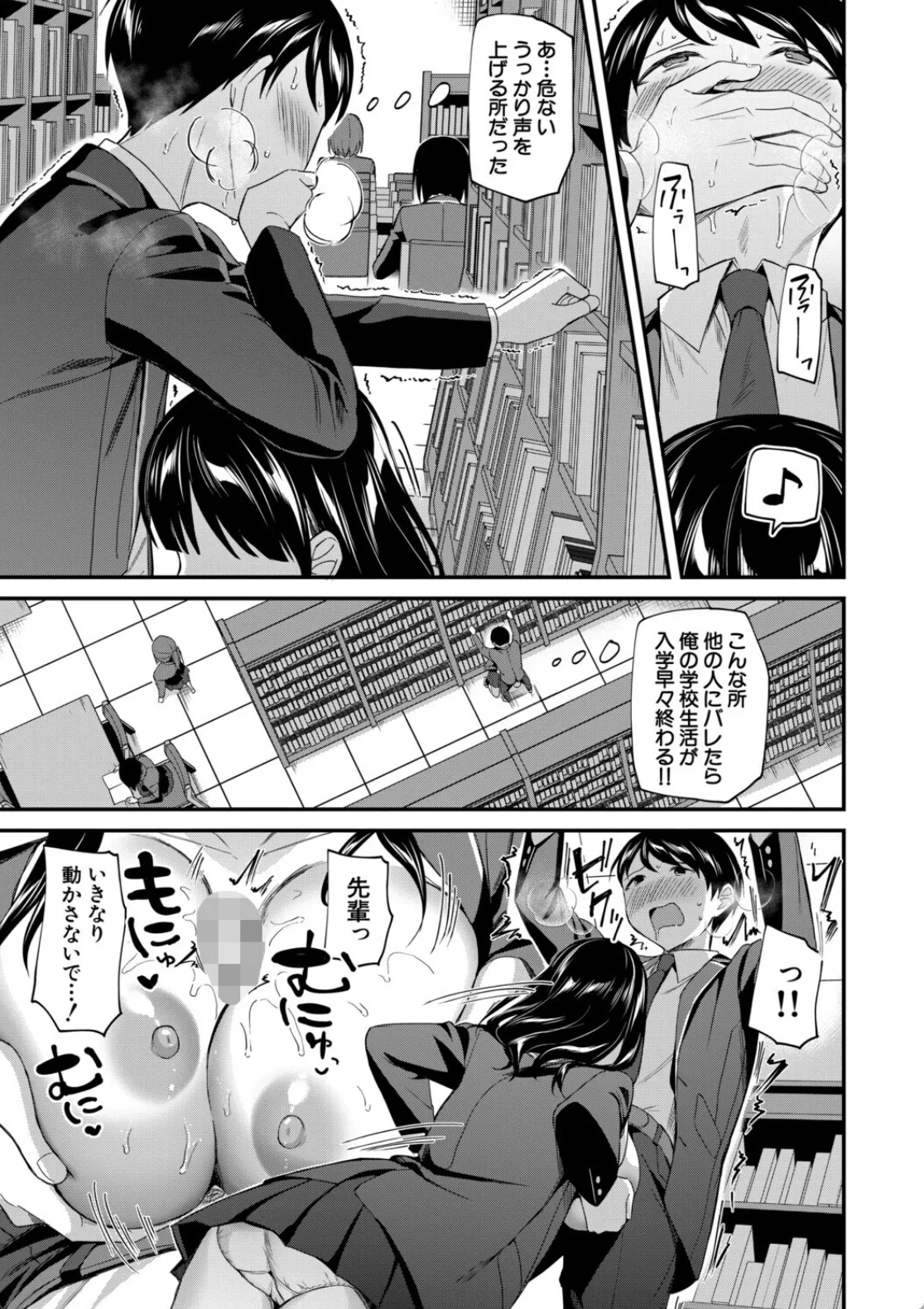 信吾は運動が大の苦手だった。この学校では生徒は部活動か委員会に必ず所属しなければならない。そこで、信吾は図書委員になることを決める。委員長の舞菜と二人で受け付け当番をする日、舞菜は突然信吾の股間を触り始める。信吾は受付業務中であるにもかかわらず舞菜にズボンの上からチンポをシコシコされてイってしまう。それ以来、舞菜は当番の度に信吾にセクハラをするようになる。フェラや手コキは当たり前で時にはパイズリで精液を搾り取る。信吾は毎週木曜日が待ち遠しくなっていた。そして、舞菜にセックスをさせてほしいとお願いする信吾だったが…。