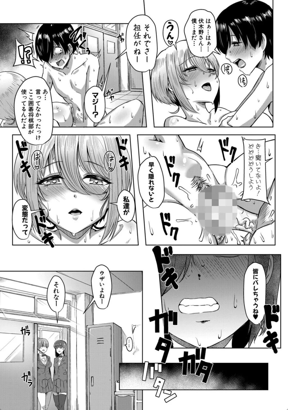 斜め前の席に座る伏木野さん。蔵井は彼女に憧れていた。ふと目をやると何やらもぞもぞしている。伏木野は授業中にチンポの画像を見ながらオナニーをしていたのだ。蔵井はそれを見てズボンの中でチンポをシコシコ。伏木野がイクのと同時にパンツの中で射精してしまう。蔵井はオナニーを見ていたことに気付かれて、伏木野に放課後空き教室に呼び出される。ドアを開けて待ってのは、セクシー下着を身にまとった伏木野だった。血管の浮き出た勃起チンポを間髪入れずにしゃぶり始める伏木野。マンコとチンポを見せあって相互オナニーで軽イキした後はロッカーの中で密着エッチ…。