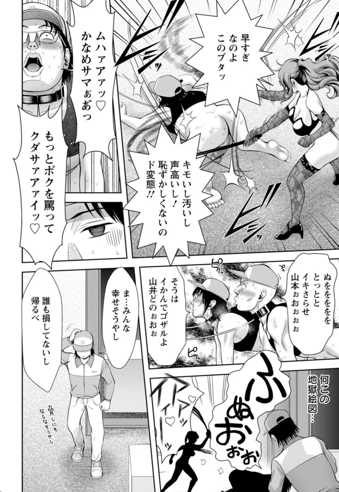 ここはとある会社の工場。今日もせわしなく働く工場員たち。この工場には秘密があった。半年前、パワハラ女上司で有名な女工場長のかなめが最近おとなしいことに気付いた山田。その秘密を先輩に尋ねると、時間外に敷地の隅にある倉庫に行けば真相がわかると聞かされる。山田は恐る恐るその倉庫の中を覗いてみると、そこにはセクシーなコスチュームを身にまとって工場員たちを調教するかなめの姿があった。四つん這いで一列に並ぶ男たちのケツを叩く女王様のかなめ。山田は隠れているのがバレて、その調教プレイに参加することになり…。