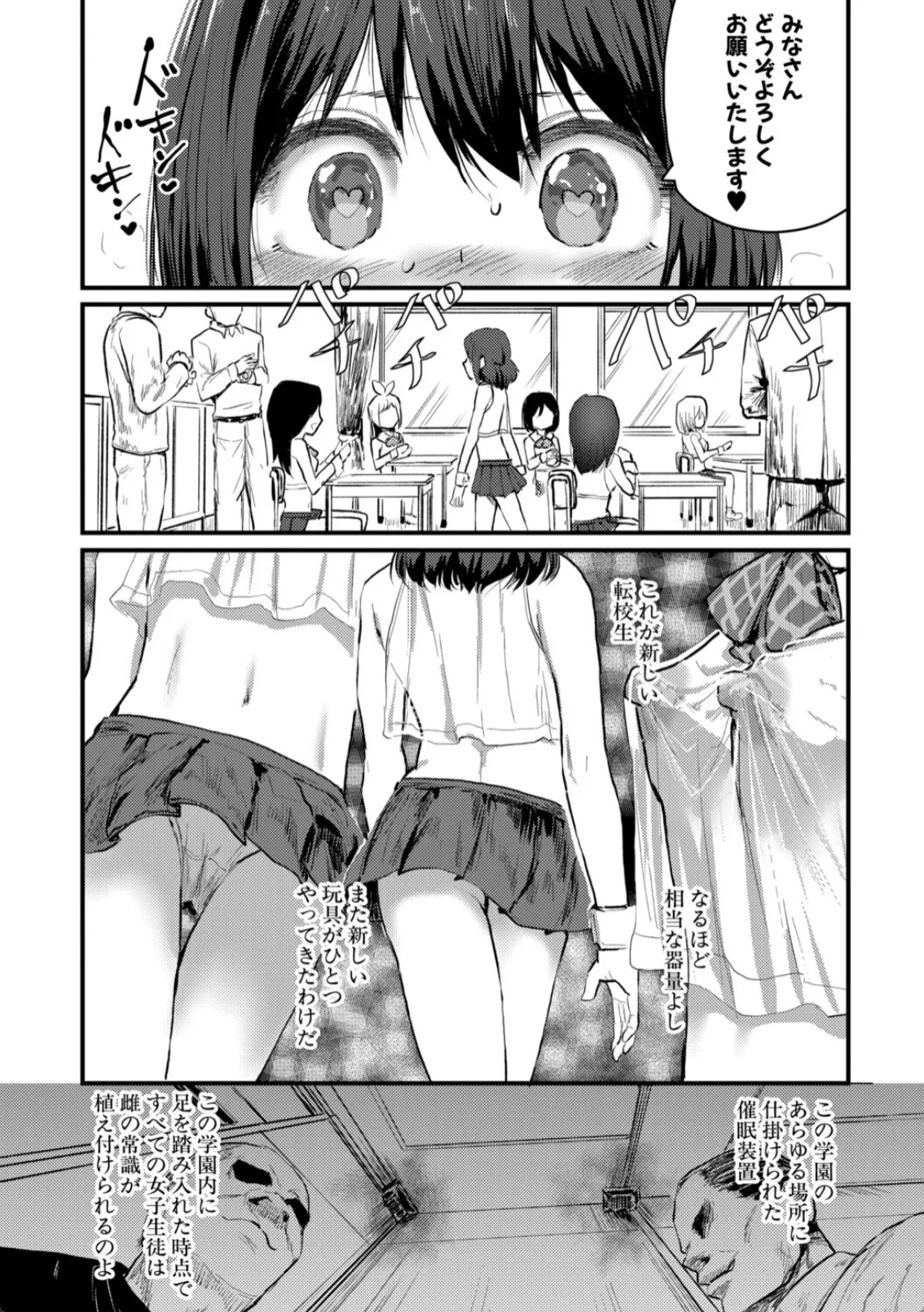 清徒女子学園、花も恥じらう乙女たちが通う私立学園。その学園で可憐な女子生徒が職員たちの慰み者になっているという噂がある。その噂を確かめるべく、秘密機関に所属するエージェント愛美がその学園に生徒として潜入を試みる。しかし、その学園に足を踏み入れた時点で愛美は催眠にかかってしまう。教師からセクハラをされてもそれが日常の風景としてそれが当たり前のこととして女子生徒には認識される。催眠によって全ての常識が書き換わってしまったのだ。そして、愛美も教師たちによって都合の良いオナホとしてマンコに精子をコキ捨てられるはめに…。