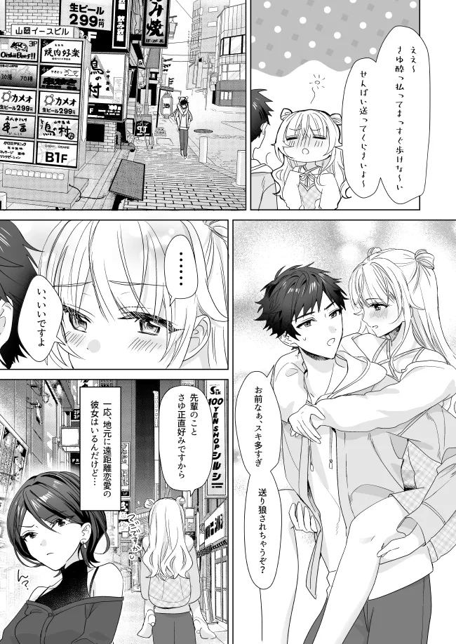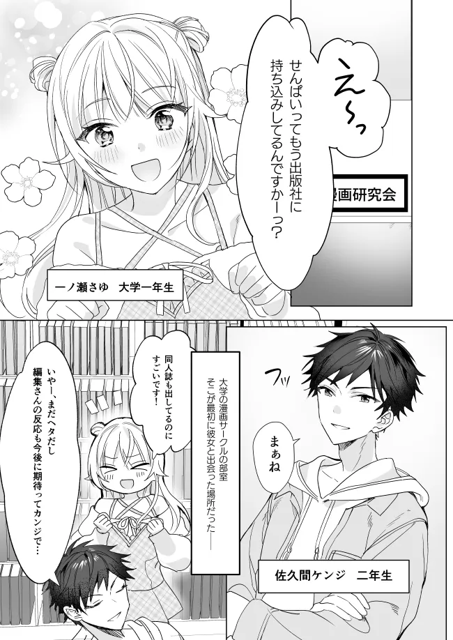 漫画サークルの部室、そこが最初に彼女と出会った場所だった―。佐久間ケンジは大学二年生、彼女とは遠距離恋愛中で漫画サークルに所属している。そこへこの春大学生になった一ノ瀬さゆが入部してくる。この日、新入生歓迎会でさゆは酒を飲みすぎてしまう。まっすぐ歩けないさゆを家までおんぶして送って行くケンジ。さゆの家についてからさゆの誘惑が始まる。これを拒否すれば男が廃る。彼女がいながらもケンジは欲望に負けてさゆと中出しエッチをしてしまう。後日、さゆはとんでもないストーカーヤンデレ気質ということが発覚して…。