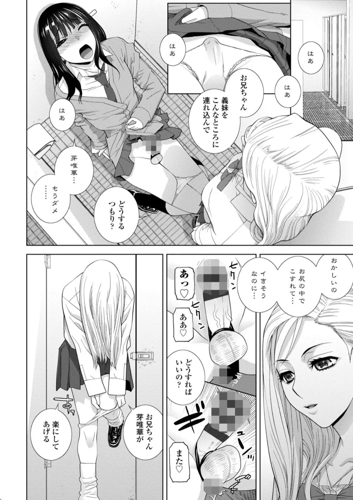 兄が本来の姿でいられるのは学校にいるときだけ、それ以外は女装している。しているというよりは義妹に女装を強制されているのだ。この日、義妹と一緒のファミレスへ。練習してきた女声で注文をさせられる兄。そして隣に座って兄のパンツに手を突っ込み手コキを始める義妹。さらに義妹の指示でアナルにプラグを挿入される。公衆トイレに二人で駆け込むと、義妹はマンコを使って兄のチンポをシゴき始める。「ちゃんとイキたい?」アナルでメスイキして竿でオスイキする兄。無様に射精させられてしまう。義妹による性的支配はまだまだ続く―。