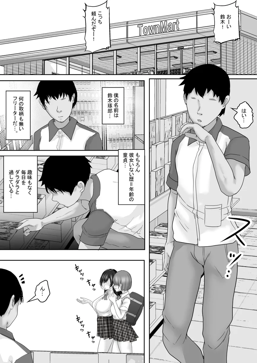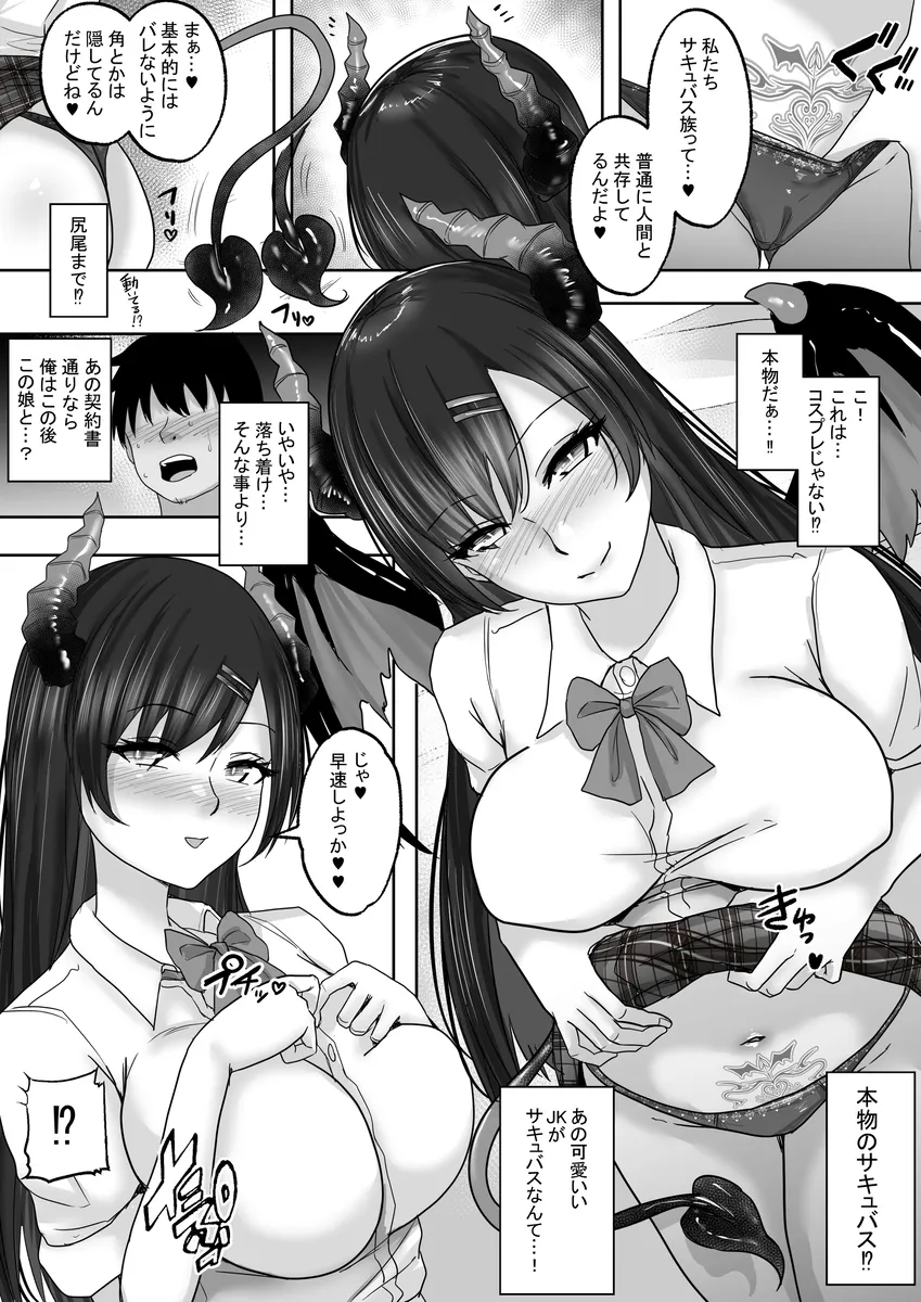 琢郎は彼女いない歴年齢の童貞コンビニアルバイター。店にやってくる巨乳JKをただただ遠くから眺めることしかできない。ある時、サキュバス契約書と書かれた本がコンビニの駐車場に落ちているのを発見する。この契約書に名前を書くと、サキュバスが精子を抜きにやってくるのだとか。琢郎は半信半疑ながらもその本に自分の名前を書く。すると翌日、昼間コンビニに来ていた巨乳JKが訪問してくる。そう、彼女こそサキュバスだったのだ。琢郎は生おっぱいに夢中で吸い付く。これが本物のおっぱい、本物のおまんこ…。そして童貞を卒業する瞬間がついに訪れる…。