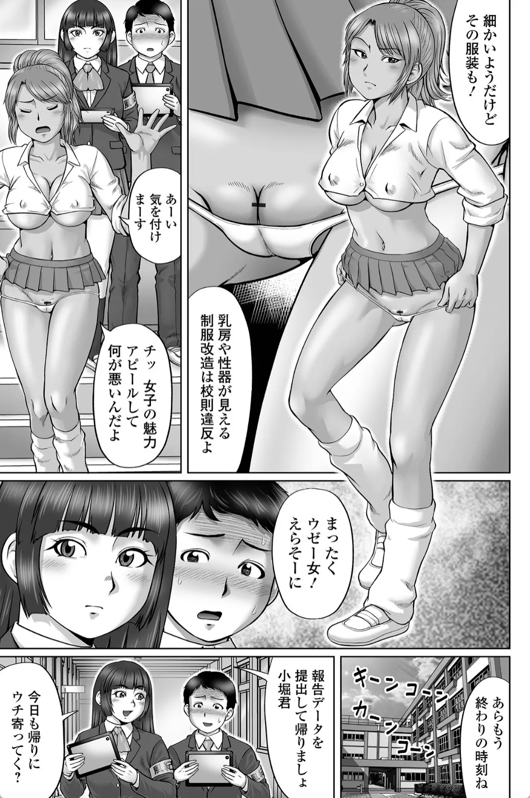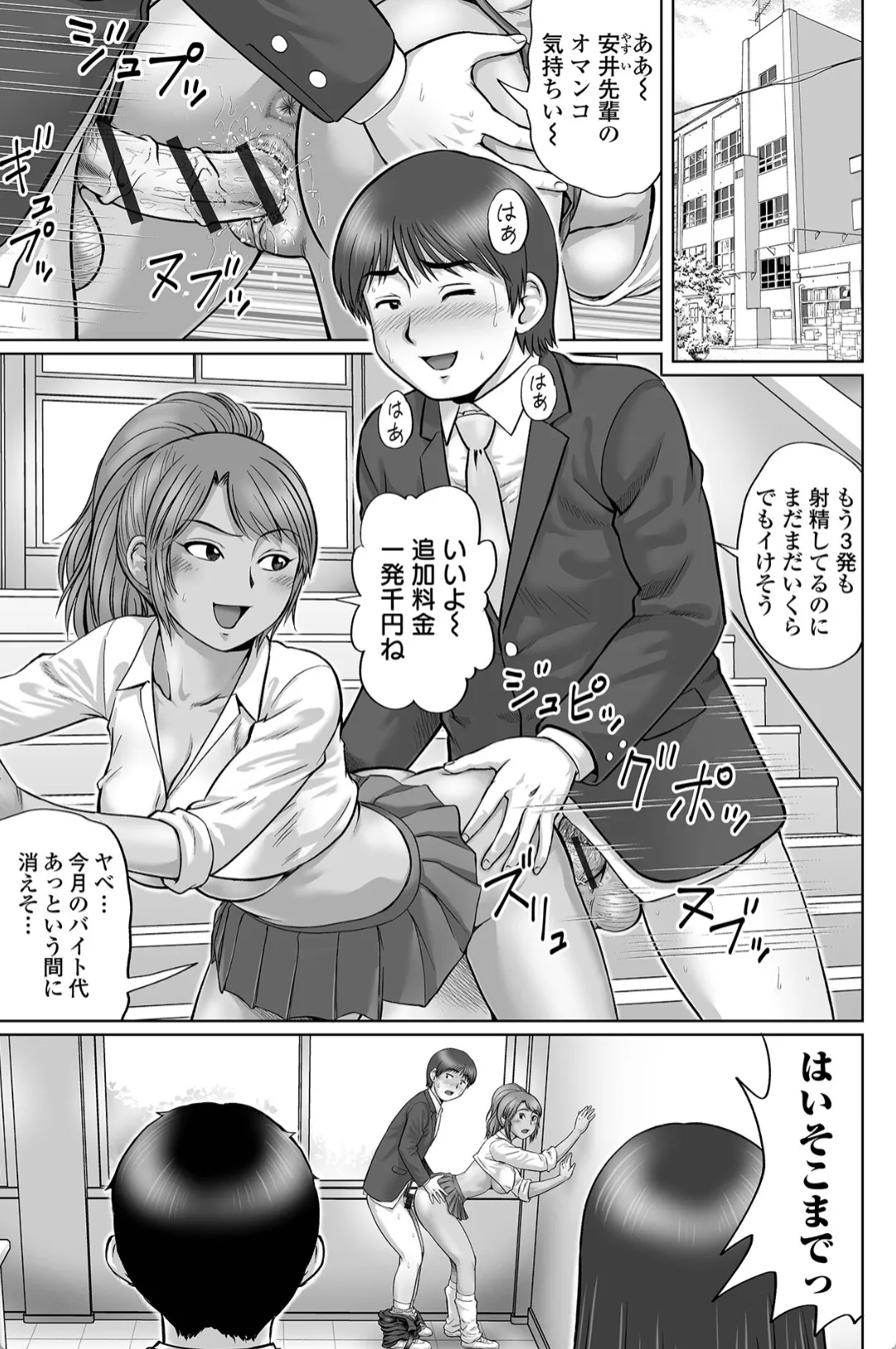 風紀委員のJK清川は同じ風紀員の小堀と今日も校内でセックスをしていた男女を発見し指導する。非常に真面目に見える清川だが自身は高級売春クラブでいつもおじさんたちに抱かれていた。小堀は卒業までにどうしても清川とエッチがしたかった。そこで小堀はバイトを頑張り五十万円と引き換えに清川とエッチ懇願。しかし清川はそれを受け取らず校内で最後の思い出エッチをしようと小堀を誘う。グロマンをおっぴろげて小堀のチンポを飲み込む清川。一発中出しした後に肥大化したビラビラをチンポに擦り付けてマンビラ素股オナニー。卒業した後も二人の関係は続き…。
