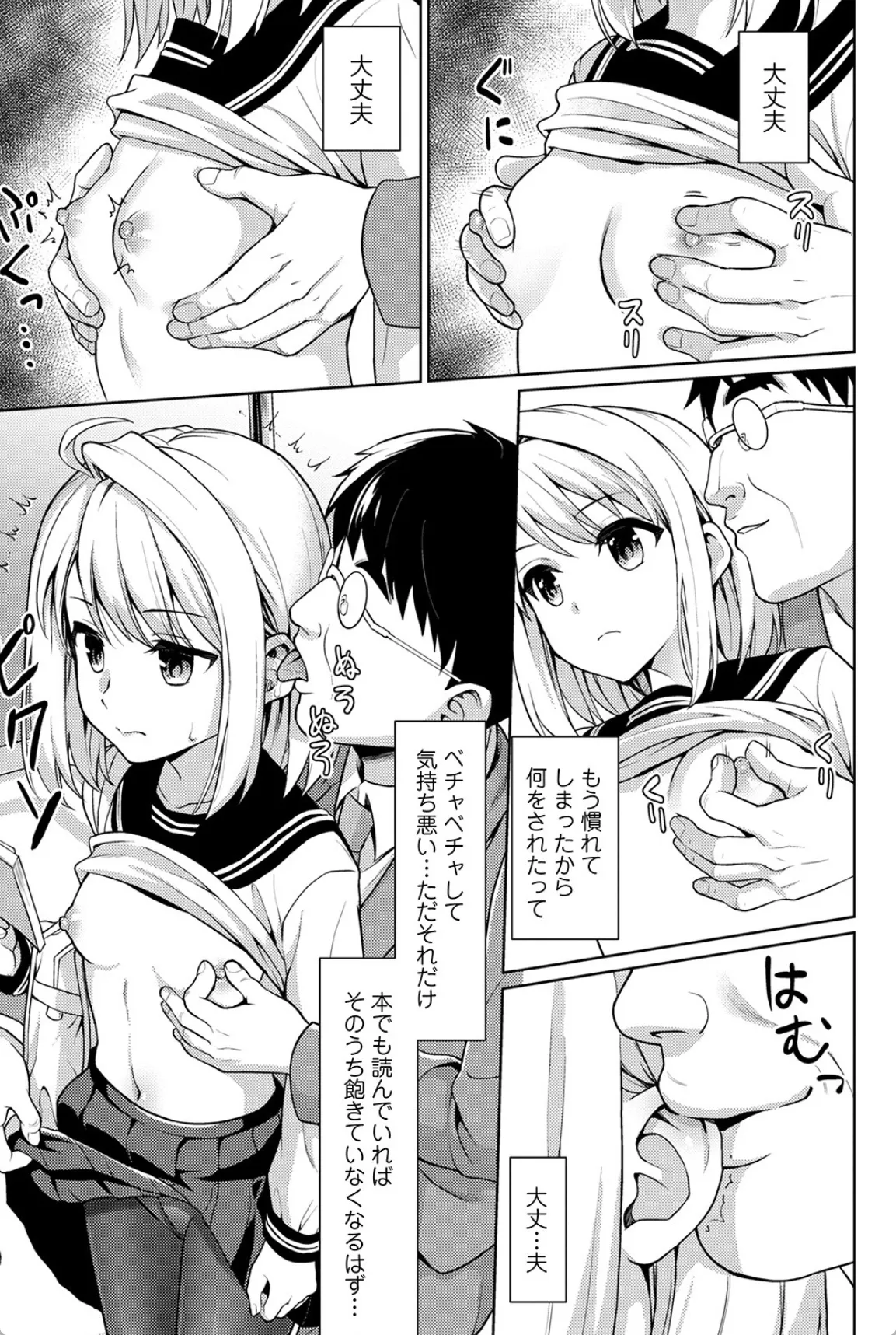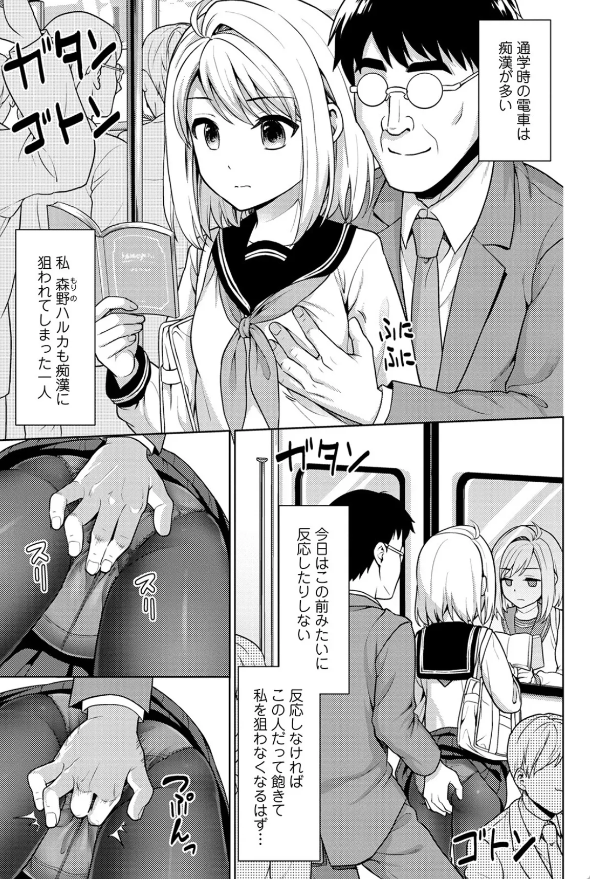 通学時の電車内は痴漢が多い。満員電車ともなればなおさらだ。森野ハルカも通学中に痴漢に狙われてしまう。この前は、ビクついてイってしまったけど、今回は違う。きっと何をされても無反応ならきっと痴漢男も諦めてくれるはず、ハルカはそう思っていた。この日も後ろから乳首やおまんこを弄られるハルカ。ハルカは喘ぎ声一つ漏らさず本を片手にただじっと読んでいるだけ。しかし唐突に痴漢男にチンポをマンコにねじ込まれてしまう。これはハルカも予想外だった。そして、チンポを入れられたままクリを弄られハルカは潮を吹いてあっけなくイってしまい…。