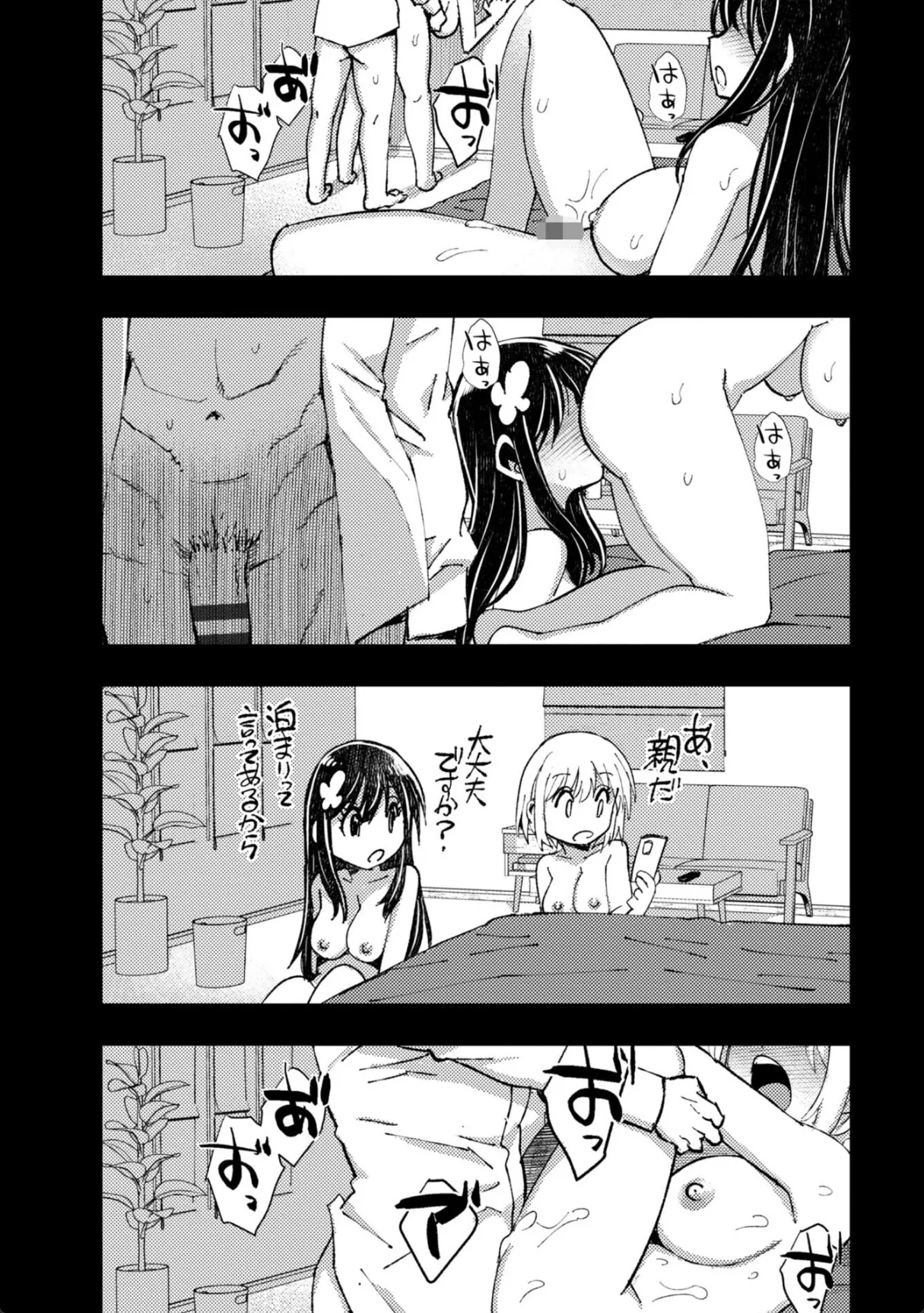 そこのお兄さん、あたしたちと一緒に遊びませんか?と逆ナンされるサラリーマンの男。その女の子二人に札束の入った封筒を渡される。これでチンポを買うというわけだ。エッチが好きすぎる二人はみんなその圧に負けて逃げ出してしまうのだとか。男は半勃起状態でもかなりのデカさだった。愛おしそうに見つめてまずは一発フェラチオで口内射精。二人で気持ちよくなって内で私の事も気持ちよくしてよね!チンポを奪い合いつつ何度もザーメンを抜く二人。もう精子が出なくなるくらいまでイカされ続けて…。