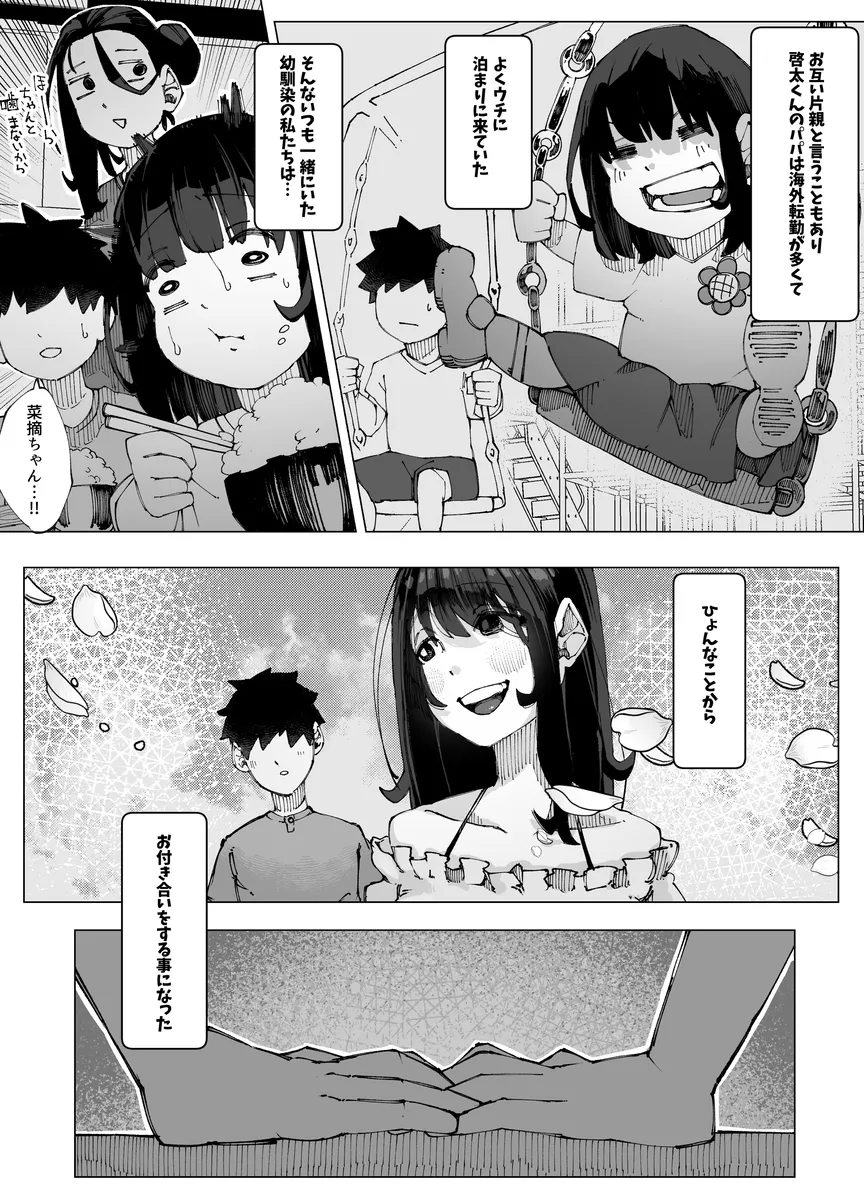 お互い片親と言うこともあり、啓太の父親は海外転勤が多く一人になった啓太よく幼馴染の菜摘の家に泊まりに来ていた。この日も啓太は菜摘の家に泊まりに来ていたのだが、そこで菜摘の母親の静香に二人は初めて付き合っているということを告白する。これが悲劇の始まりだった。静香は啓太に眠剤を盛って菜摘とセックスしないように仕向けると、翌朝起きてきた啓太にマンコを見せて誘惑。立派に実った果実を娘に取られる前にまずは自分が味わいたい。そんな身勝手な理由で啓太のチンポをパイズリしてさらには筆下ろしまで…。