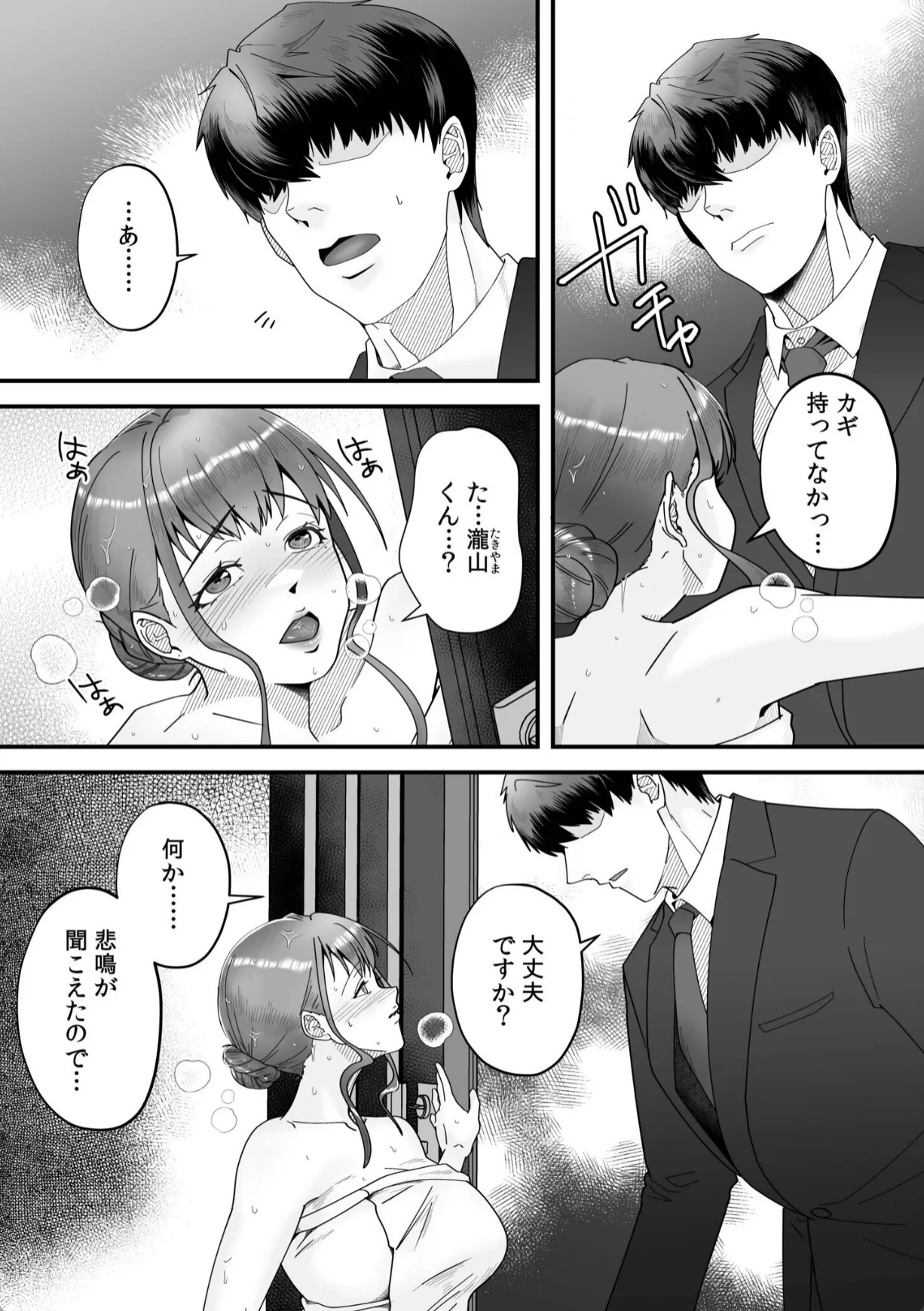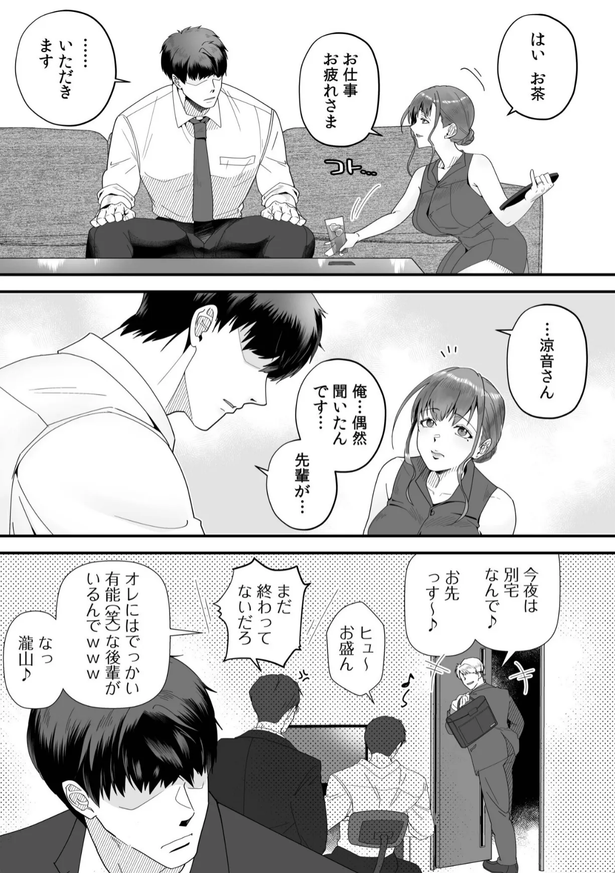 涼音は夫の遼太に浮気をされている。薄々気付いてはいたが、自分が我慢して丸く収まるならと我慢していたのだ。涼音は疼く身体をシャワーオナニーで発散していたところ玄関のベルが鳴る。涼太の部下の瀧山だ。彼は遼太が忘れた書類を代わりに取りに来たという。瀧山も遼太が浮気していることは知っている。俺ならあなたを放っておかない。涼音は瀧山に押し倒されて強引にキスをされる。気持ちでは拒んでいるものの身体は彼のチンポを受け入れてしまう。涼音は中出しされると同時に潮を吹いて絶頂。そして数日後また瀧山が家に来ることになって…。