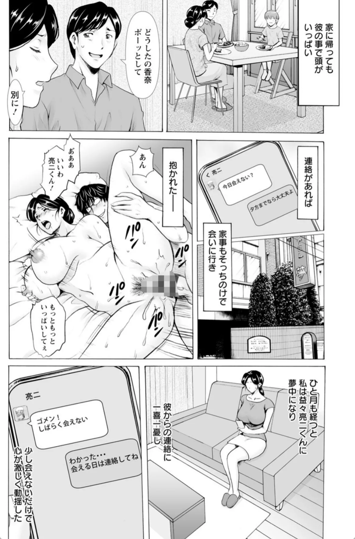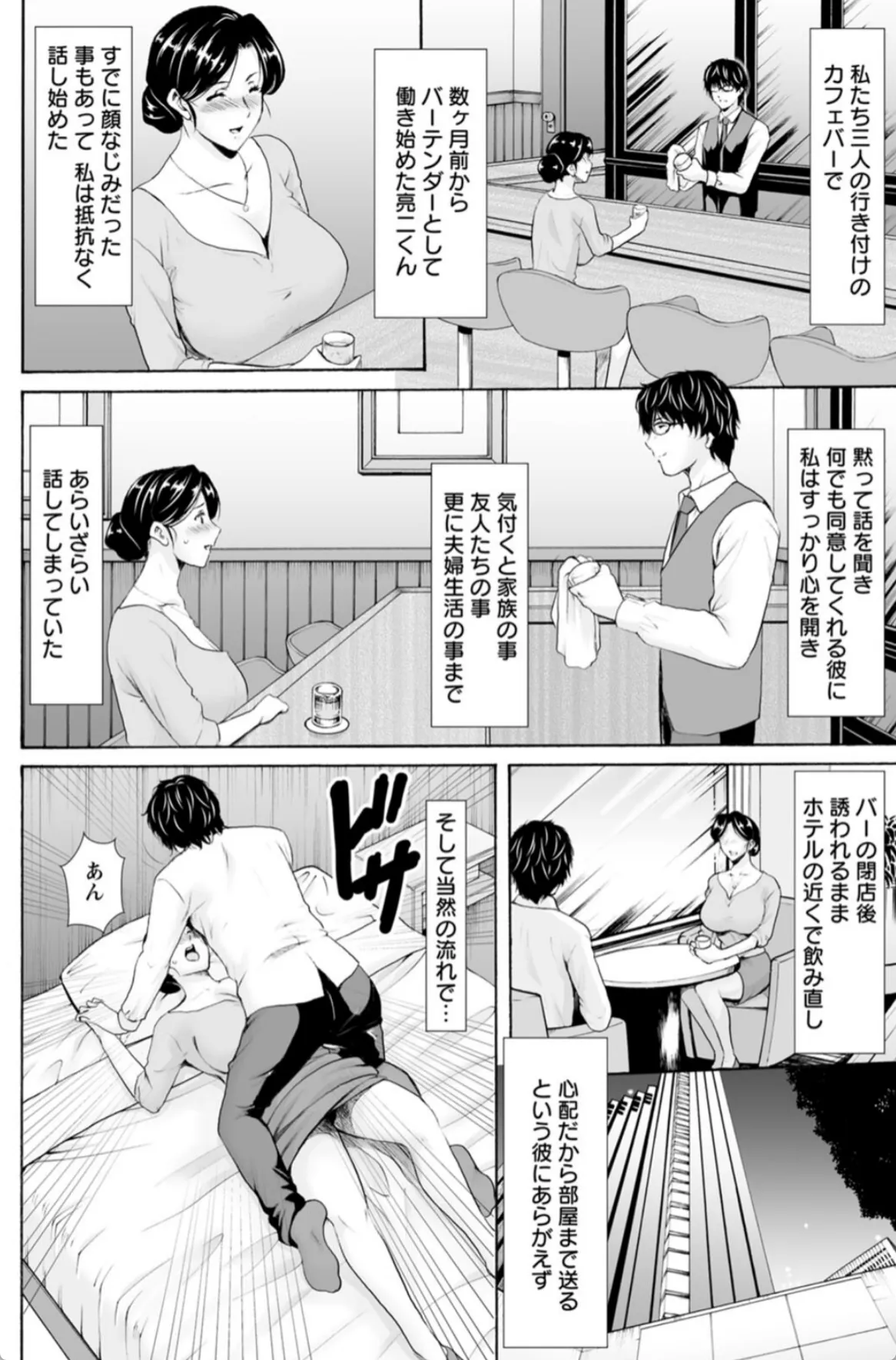 人妻の香奈はいきつけのバーで店員の亮二と出会う。友達が先に帰ったあと亮二とホテルで飲み直す香奈。そして、当然の様にセックスしてしまう。最初は不倫する気なんて全くなかったが、こんなに強く求められることは久しぶりで香奈は女としての悦びを感じていた。それ以来、亮二から連絡来るたびに香奈は亮二に会いにいき、ただひたすらに抱かれる日々を送る。亮二の要求はどんどん大きくなっていき、ついには香奈の自宅にまで上がり込む。今日は、香奈がアナル処女を卒業する日。まずはアナルを指でほぐされ…。