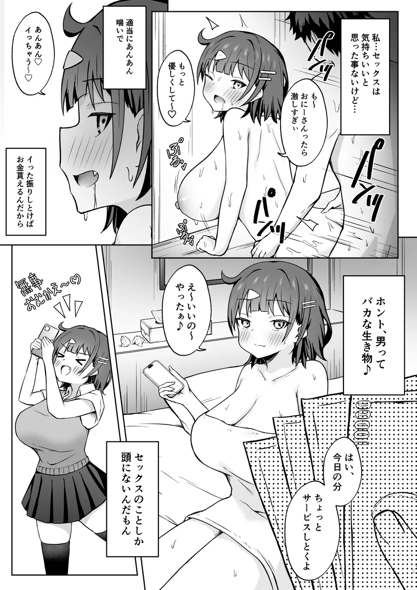 西宮ルナはゲーマーでオタクな金欠JKだ。ガチャで爆死して今日も金が無い。しかし心配は無用。ルナはパパ活をしてお金を稼いでいたからだ。チンポをしゃぶって顔射させるだけの簡単な作業。これだけでガチャ10連は回せる。セックスは気持ちいいと思ったことないが、適当にアンアン喘いでイったふりしておけばお金がもらえる。男なんてチョロい、ルナはセックスをしながら心の中でそう思っていた。ある時、ルナはとあるおじさんと出会う。そのおじさんは自分がイクよりもルナに気持ちよくなってもらいたいタイプで、ルナとしては面倒くさい。そして、30分間手マンやクンニで攻められ続け…。