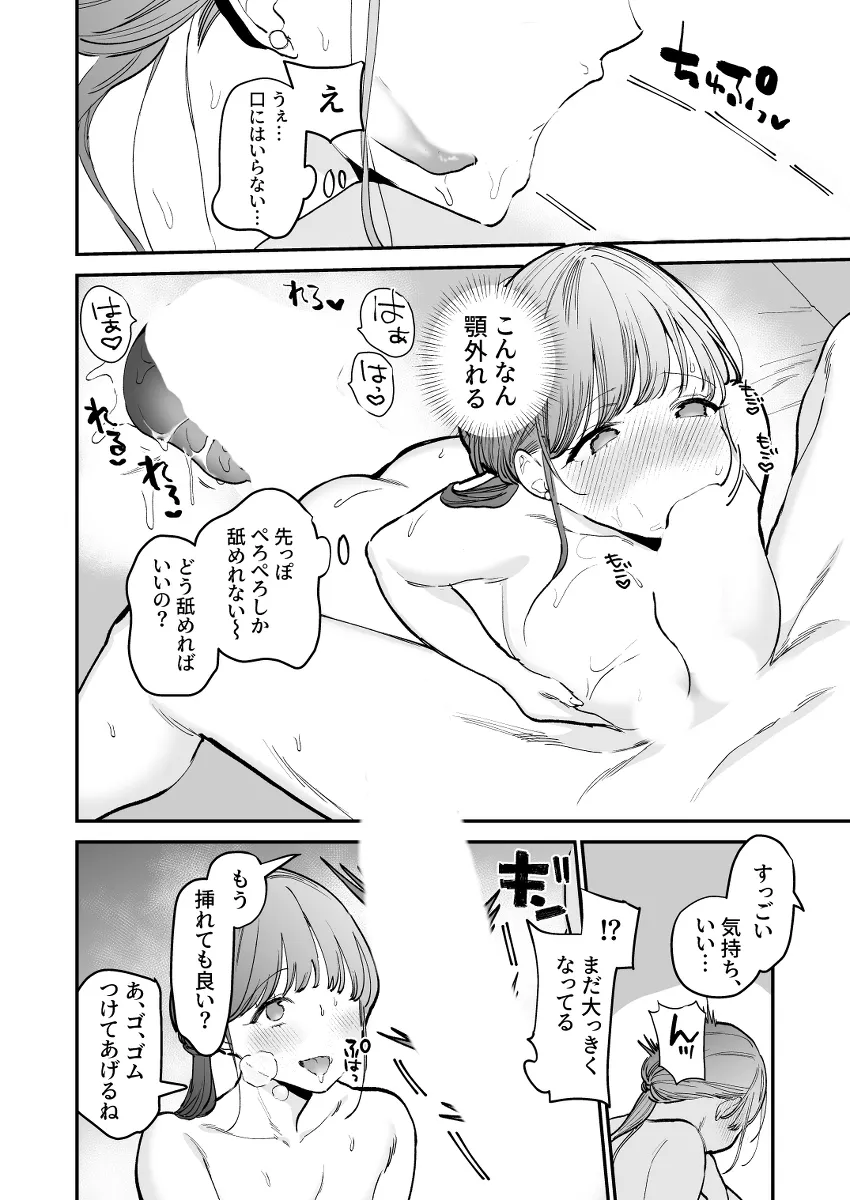 ゆみはマッチングアプリで友也で出会う。友也は童顔で真面目で女慣れしていないバキバキの童貞だ。今夜、ゆみは友也の童貞チンポを喰らうつもりでいた。最高の女はこの先塗り替えられてしまうかもしれないが、一番最初の女は塗り替えられることはない。友也の最初の相手は未来永劫ゆみなのだ。ホテルについてゆみは緊張している友也の指を舐めてマンコに挿入させる。自分で動いて気持ちよくなるゆみ。そして、友也のチンポを見るとバキバキに勃起していた。それはゆみにとってあまりにもデカかった。元カレの二倍はある。もしかするとゆみが喰われる側なのではと錯覚するくらいに…。