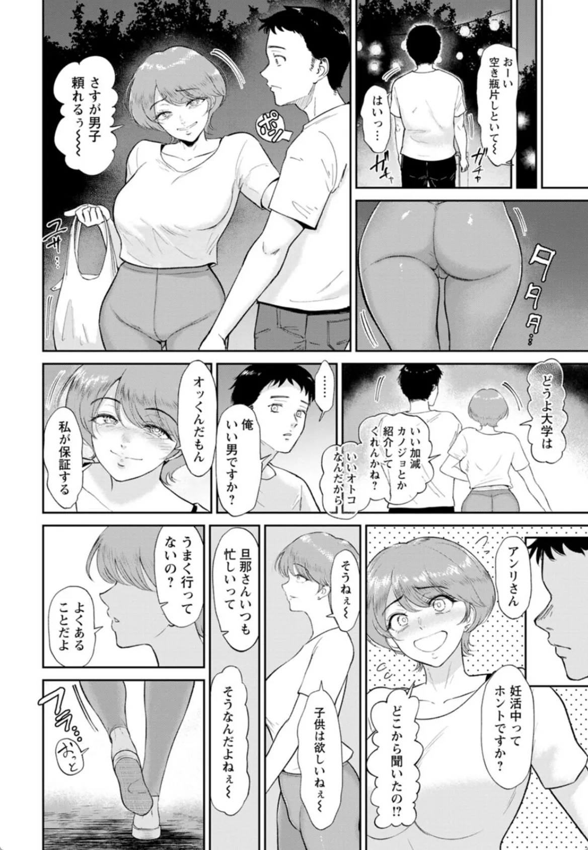 アンリは昔から親代わりのような姉代わりのような存在だった。いつしか憧れが恋心に変わっていた。しかし、そんな恋心もアンリの結婚を知ると同時に虚しく散る。今日は町内会の花見。そこでアンリが妊活中だというのを知ってつい魔が差してしまった。茂みに隠れてアンリのズボンとパンティを同時に脱がしてバックでいきなりチンポを挿入。腰ヘコしてそのまま膣内にザーメンを出してしまう。それ以来、アンリに会うたびにセックスするようになる。ここから始まるんだ、長い間掛け違ったアンリさんとの人生が―。