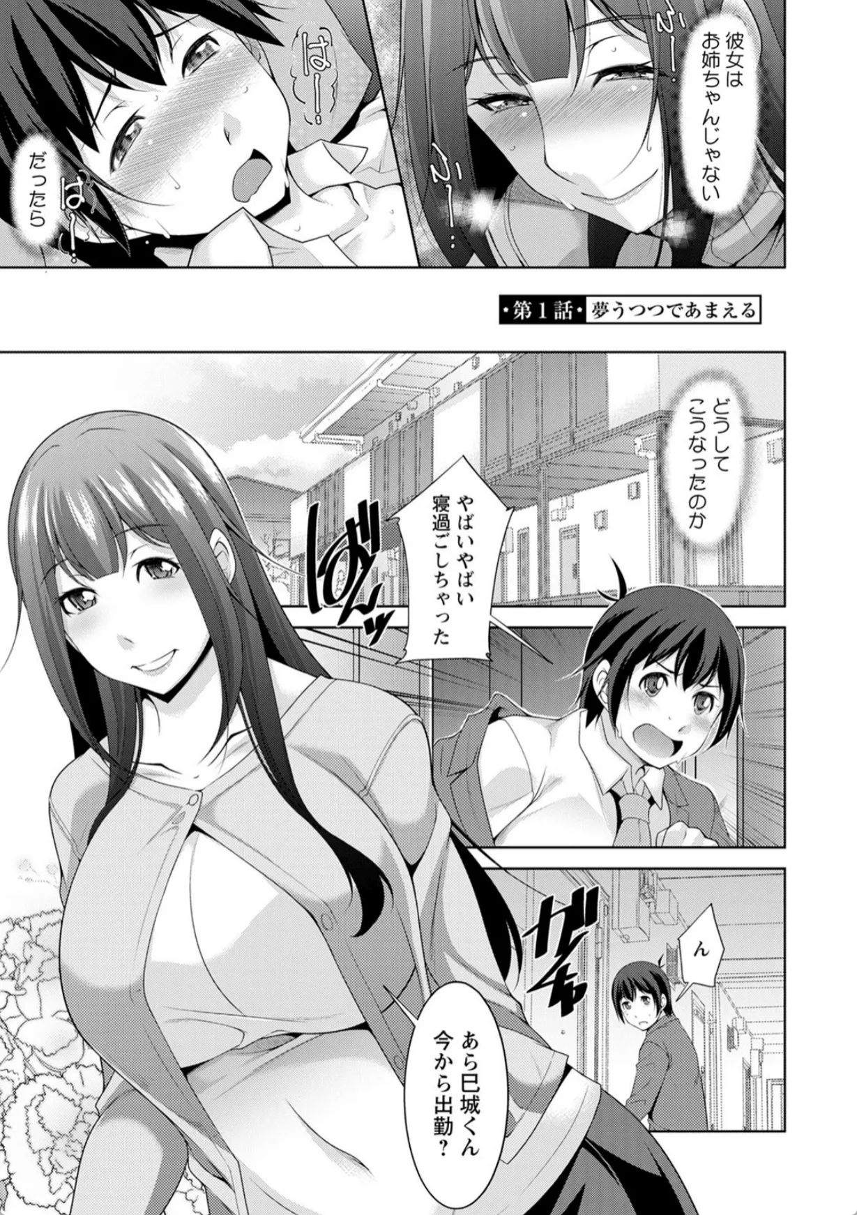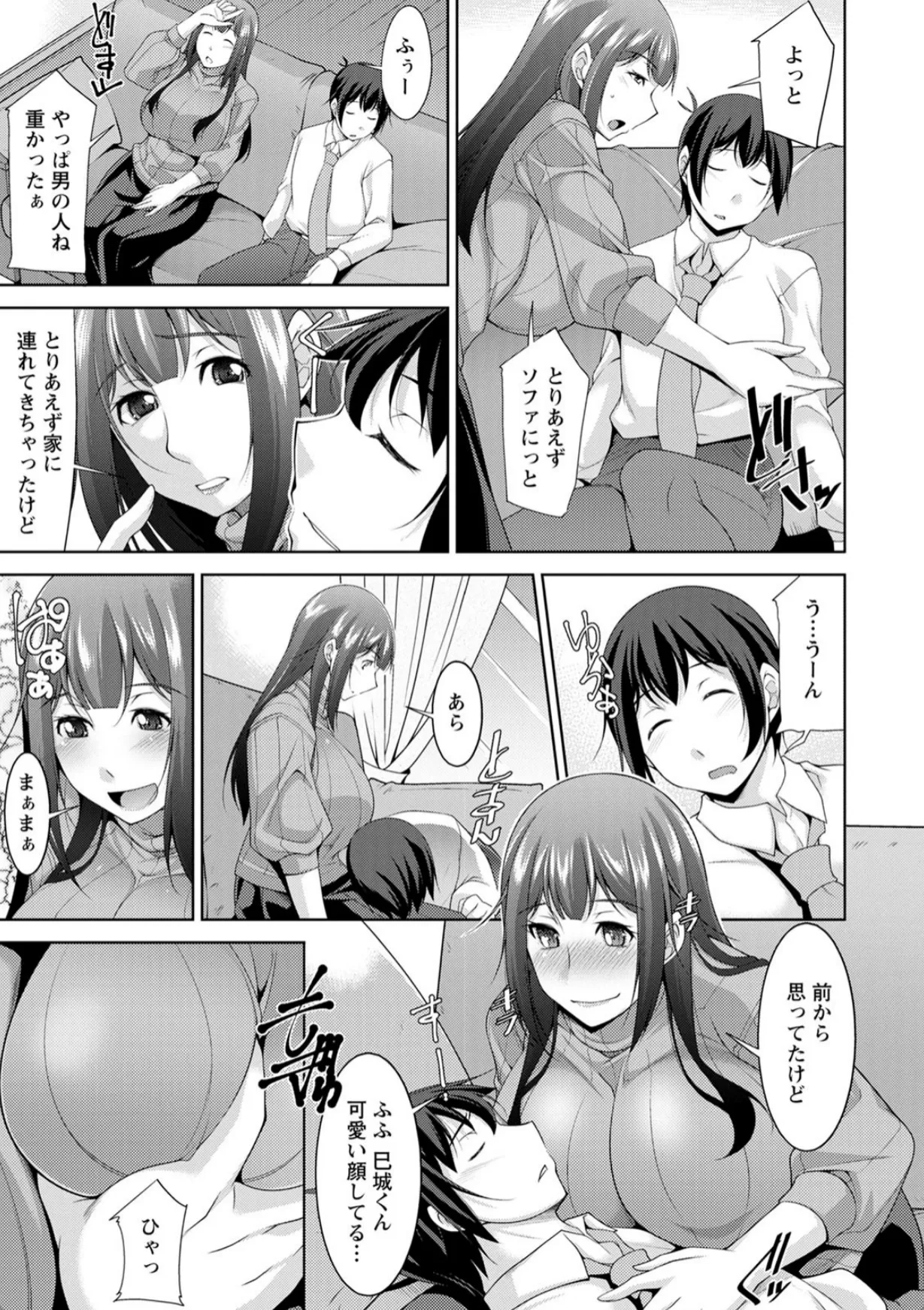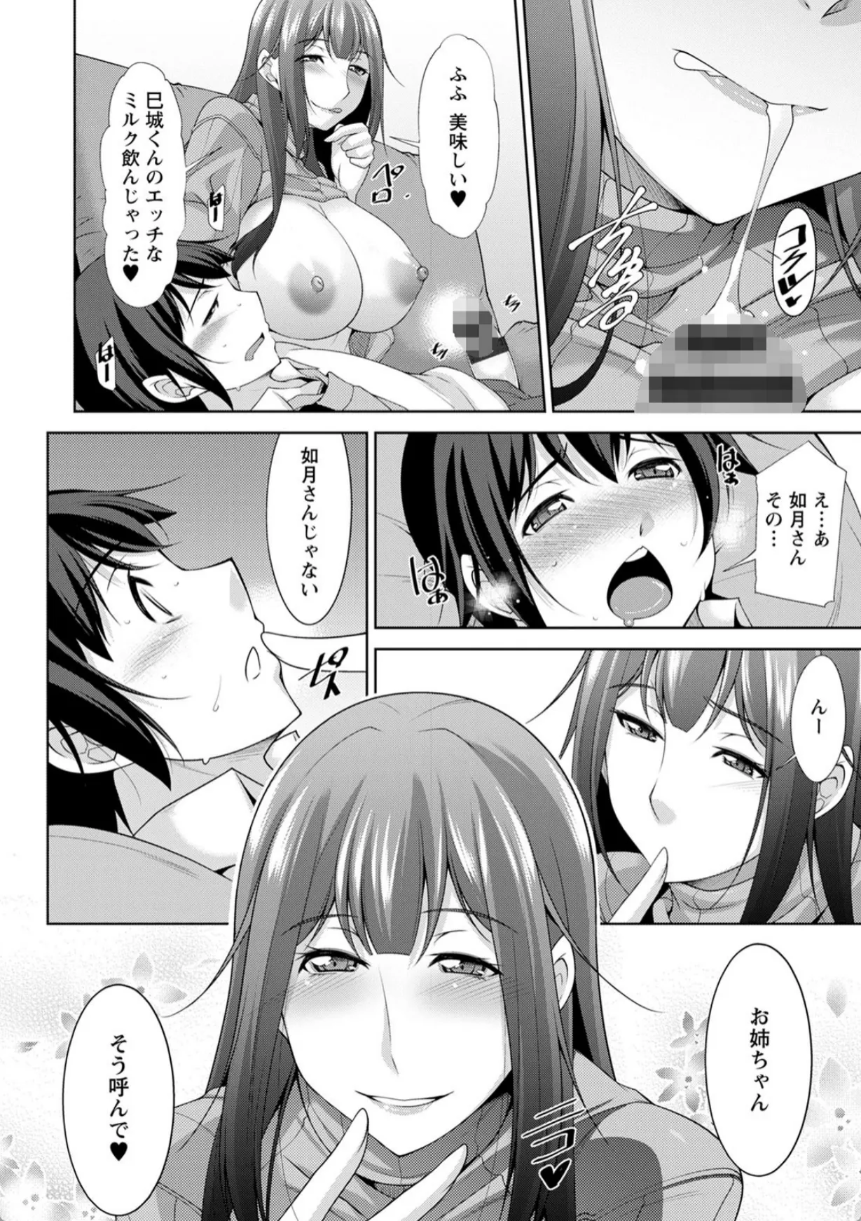 サラリーマンをしている巳城は会社に3泊するという激務をこなしたあと疲れ果てて帰宅。しかしその際、隣に住む綺麗なお姉さん如月望の家を自分の家と勘違いしてしまう。意識朦朧としていた巳城がようやく目を覚ますとそこは望の膝の上だった。目の前に差し出される生おっぱいに思わずしゃぶりつく巳城。そのまま巳城は望に手コキで射精へと導かれる。ちん先からとめどなく溢れ出す精子をお口で受け止めてごっくんする望。「お姉ちゃん、そう呼んで?」そして、巳城は望の生マンコで童貞を卒業することとなり…。