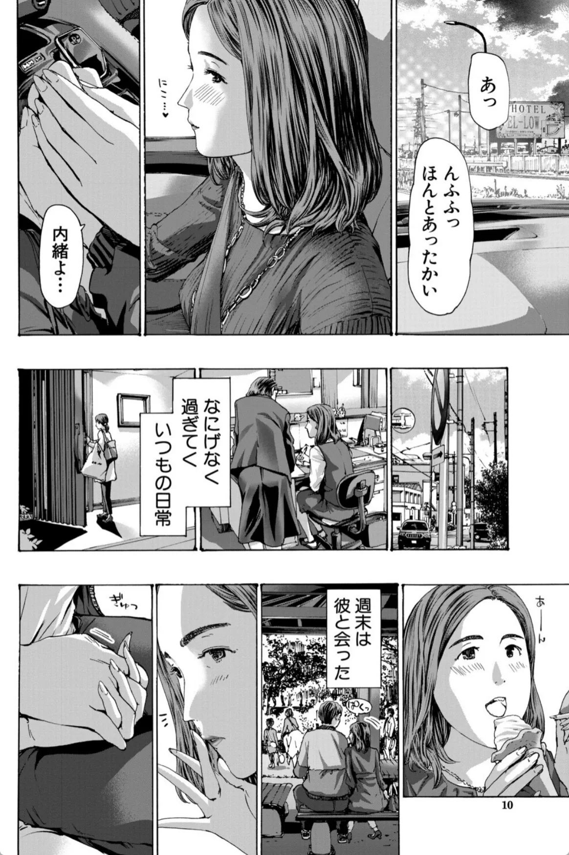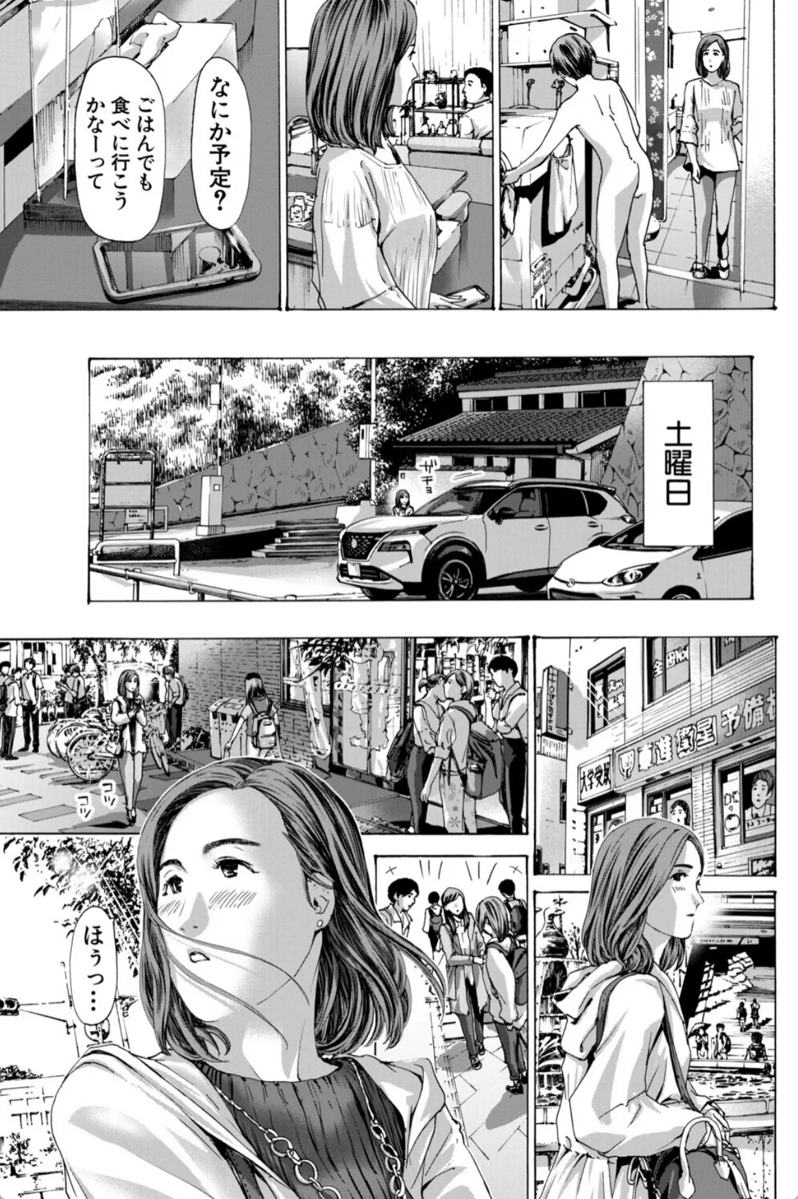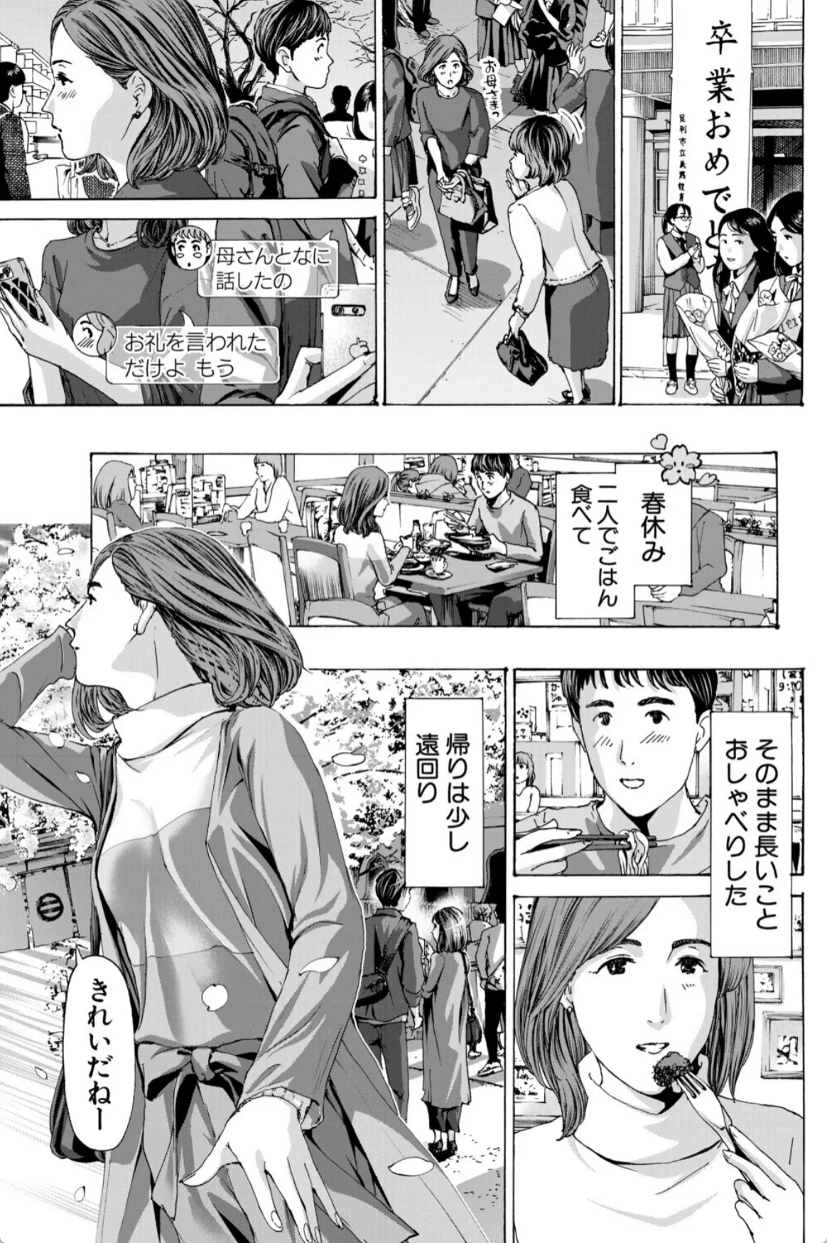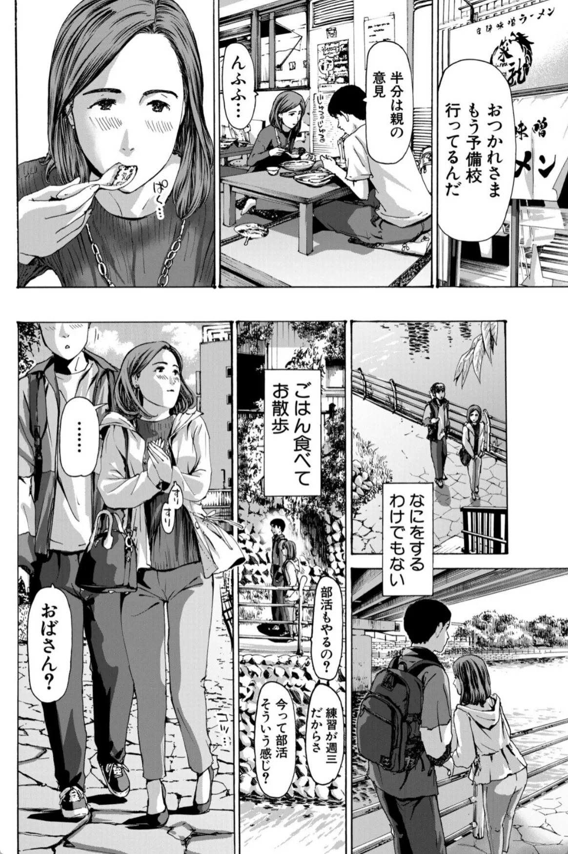 実花は息子の友達の陽介の勉強を教えるのをきっかけにどんどん陽介との仲を深めていく。無事に陽介は希望の学校に合格。それからも二人の関係は続いていく。手を繋ぎ、車の中でキスを二人。実花にとっては不倫という感覚はなかった。息子を習い事に連れて行くような感覚。そして、実花は陽介をラブホへと連れていく。「どうぞ、触って?」陽介の前に垂れ乳を差し出す実花。実花は陽介に女というものがなんなのか体を使って教示する。筆下ろしも終わりここからはボーナスタイム。実花と陽介はこのあと五回も交じり合い…。